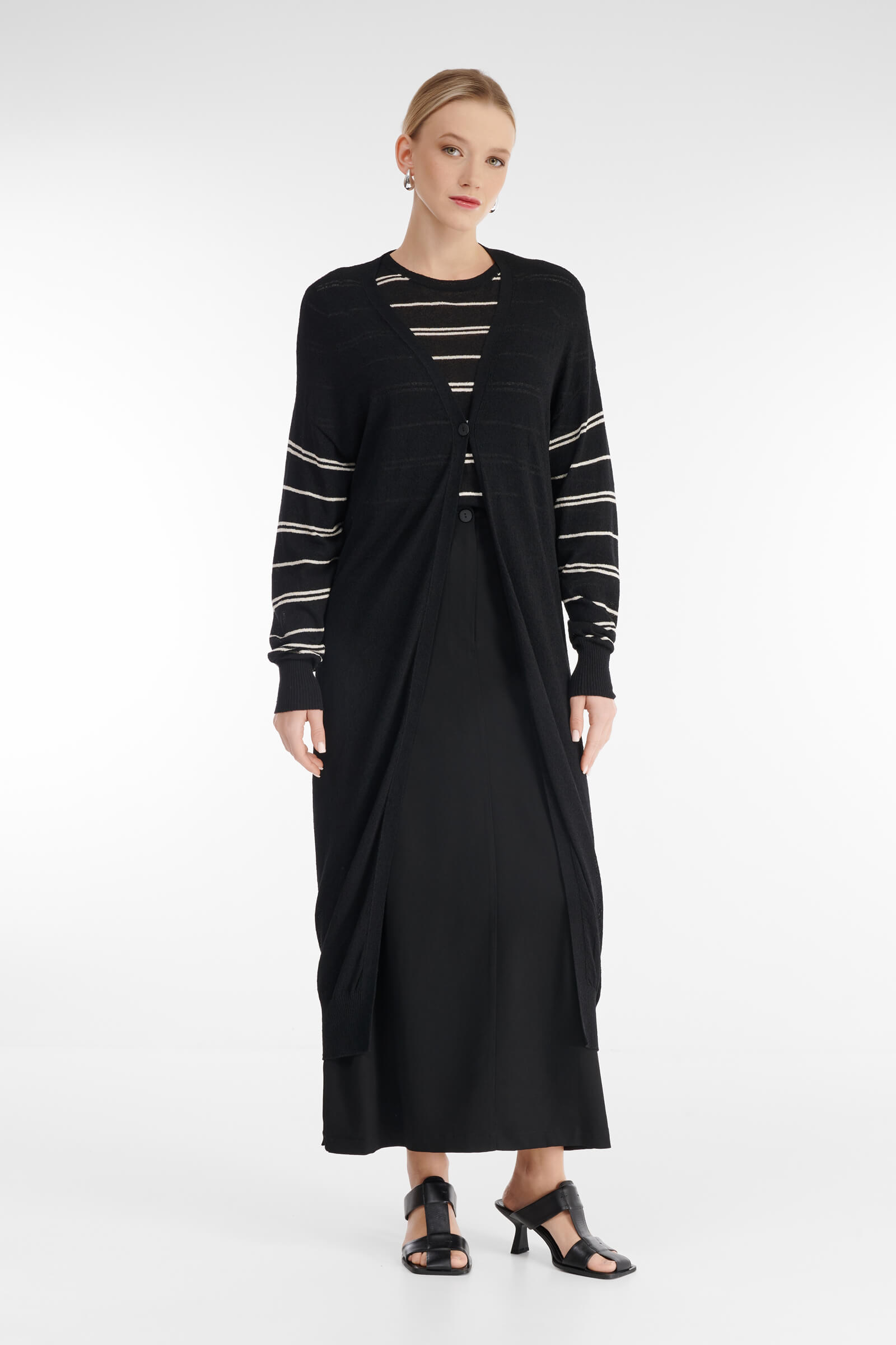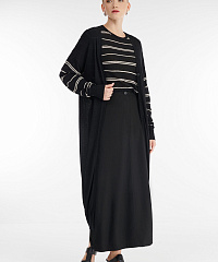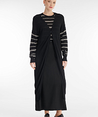 - Тонкий трикотаж с узором в полоску на рукавах