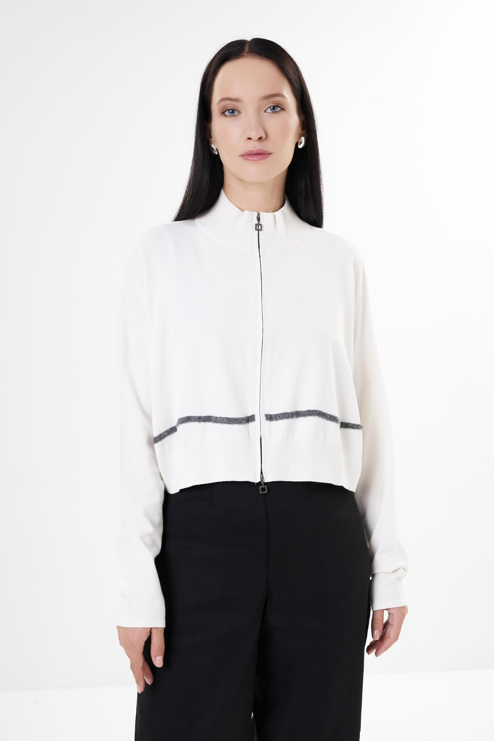 • Воротник и нижний край изделия из эластичного трикотажа в рубчик