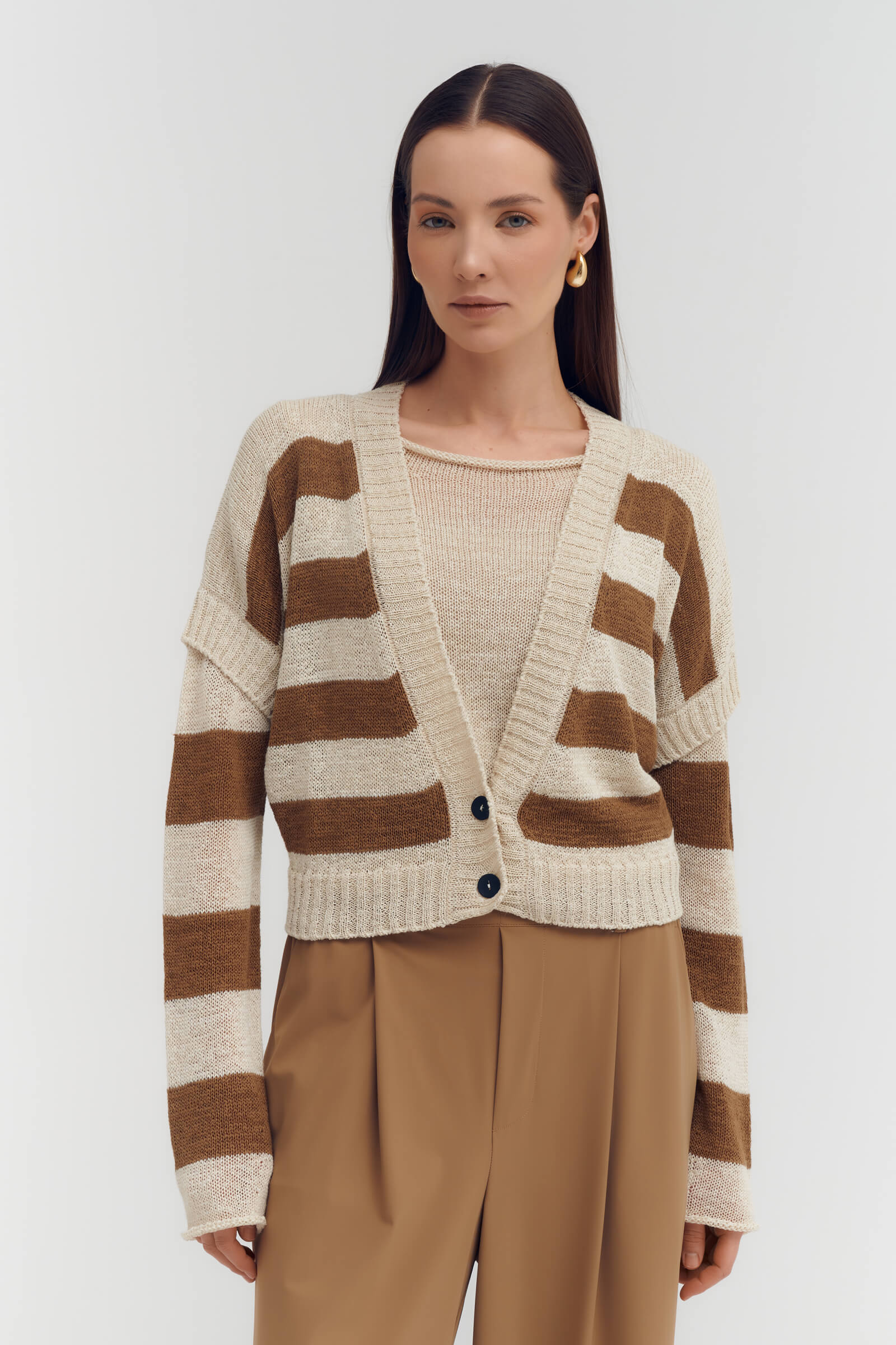 Кардиган с коротким рукавом из льна Sarah Pacini