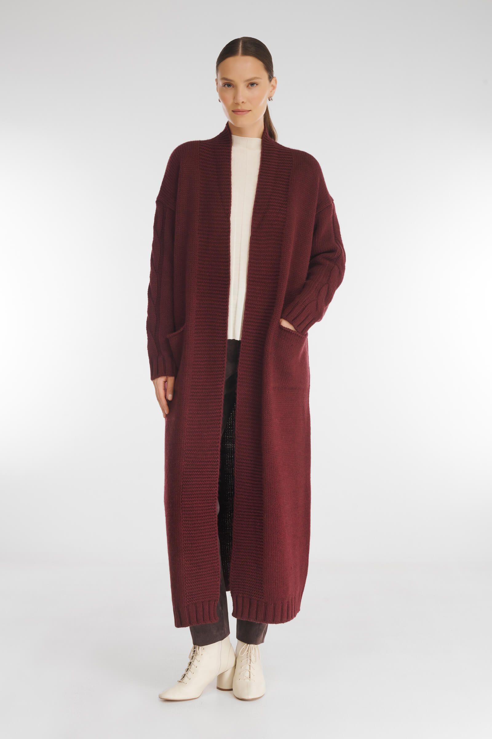 Кардиган на запах плотной вязки выполнен из смесового материала с добавлением вирджинской шерсти и альпаки. Мягкая форма со спущенной линией плеча добавляет образам уюта. Кардиган станет идеальной альтернативой верхней одежде на раннюю осень или позднюю весну.
