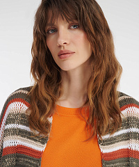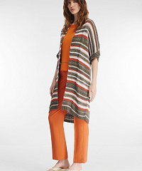 Кардиган длины миди на запах — стильное и уютное дополнение непринужденных повседневных образов. Модель можно легко сочетать с различными предметами одежды. Мягкость пряжи и комфортный крой делают кардиган идеальным спутником в повседневной жизни. Кардиган из пряжи с 50% хлопка украшен небольшими пайетками, что придает ему деликатный блеск.