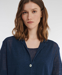 Тонкий полупрозрачный кардиган — настоящая находка для жарких летних дней. Преобладающий в составе ткани лен делает модель легкой, гигроскопичной и дышащей. Свободный крой и короткие рукава добавляют практичности. Легкий и универсальный кардиган станет идеальным дополнением летнего гардероба.