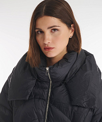 Удлиненная стеганая куртка с натуральным наполнителем из смеси пуха и пера — легкого, но превосходно согревающего и комфортного в носке. Современный дизайн со свободным силуэтом и высокими трикотажными манжетами. Съемный капюшон и кулиска по нижнему краю позволяют менять внешний вид изделия в зависимости от погоды и стиля. Куртка выполнена в Италии.