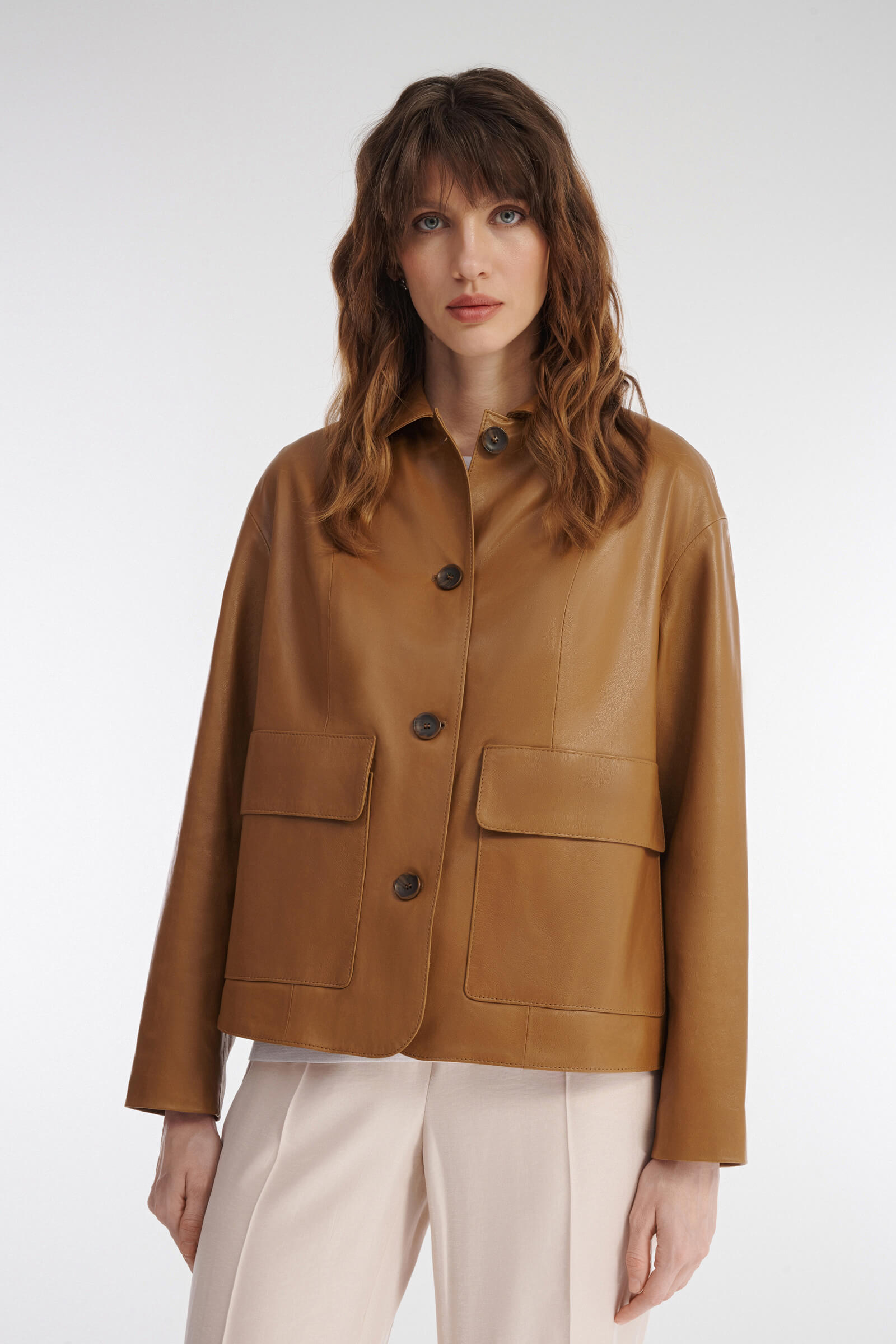 Укороченная куртка из натуральной кожи Caterina Leman