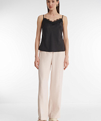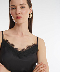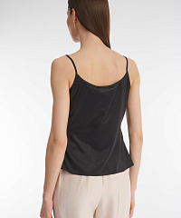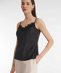 Топ на тонких бретелях выполнен из струящегося материала на основе вискозы. V-образный вырез модели украшен тончайшим кружевом. Топ станет идеальным дополнением как повседневных образов, так и вечерних нарядов.