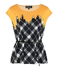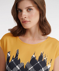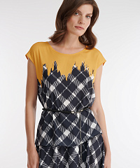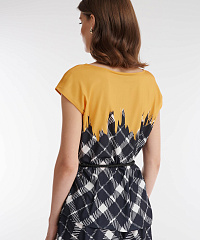 Топ с ультракоротким рукавом и круглым вырезом — узнаваемая модель Caterina Leman. Для создания изделия мастера бренда выбрали легкий струящийся материал на основе вискозы с эффектным комбинированным принтом. В комплект к топу можно подобрать юбку из той же линейки для стилизации яркого и динамичного тотал-лука.