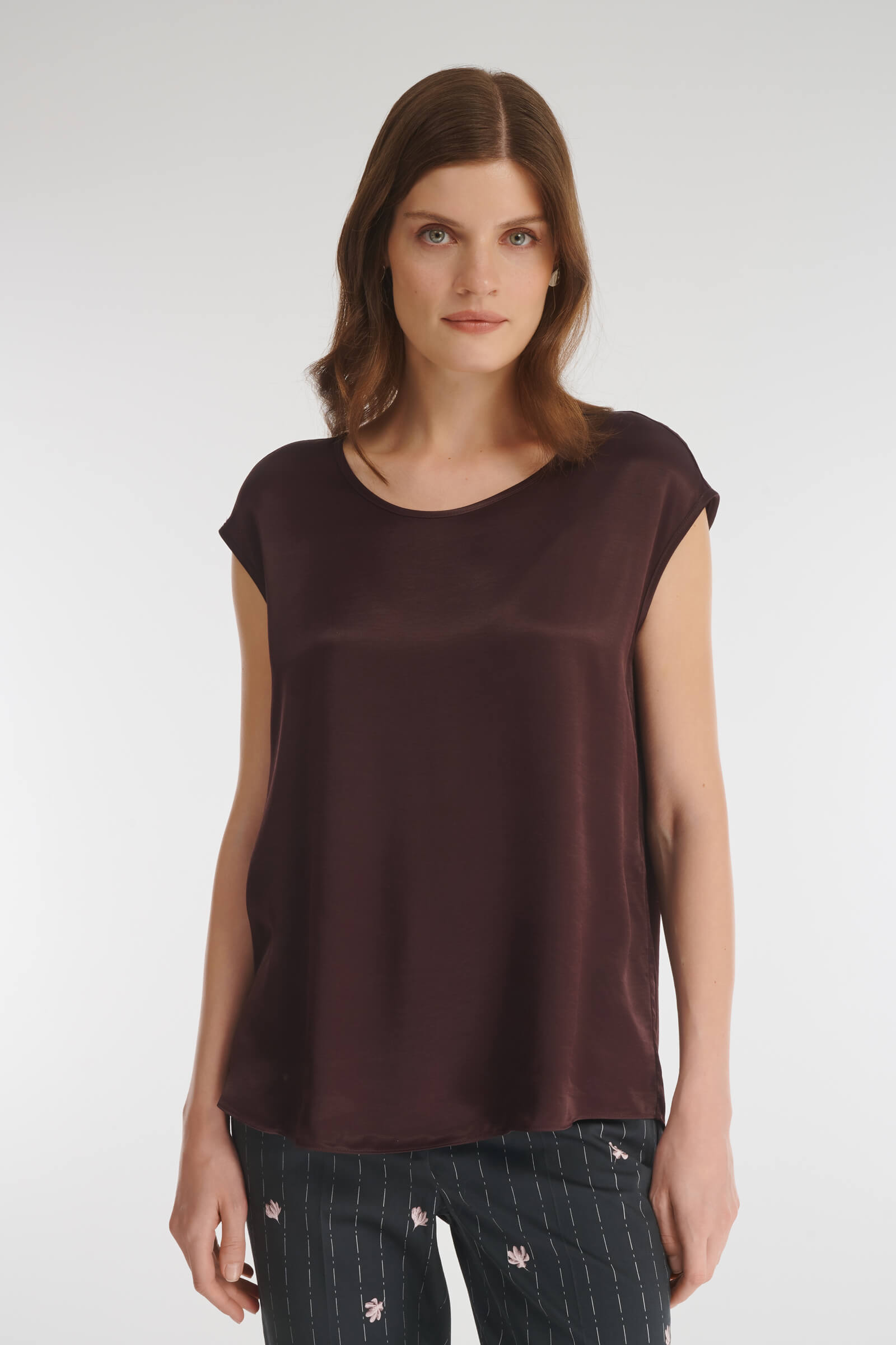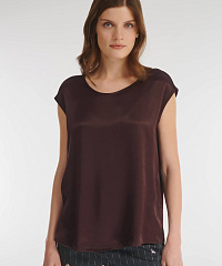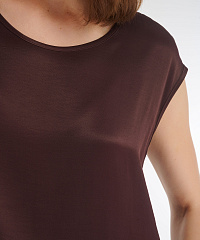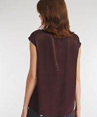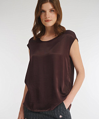 Топ с ультракоротким рукавом выполнен из 100% вискозы. Материал отлично пропускает воздух и не электризуется. Минималистичный дизайн делает топ универсальным дополнением любого гардероба.