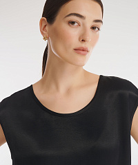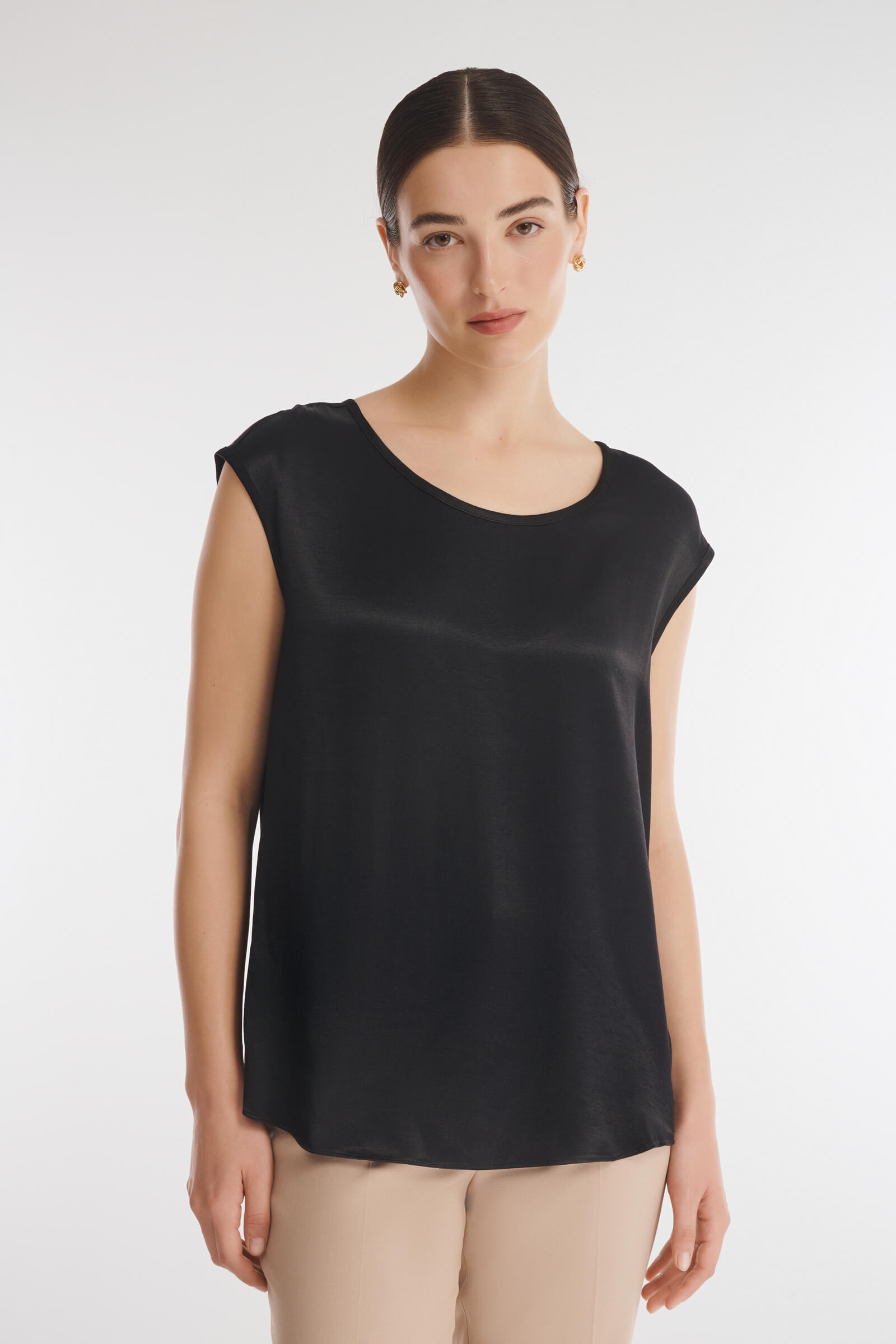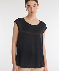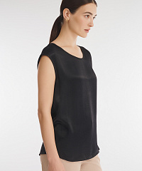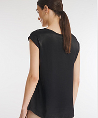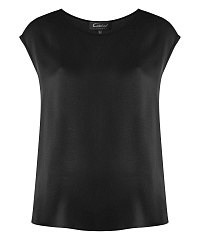 Топ с ультракоротким рукавом выполнен из 100% вискозы. Материал отлично пропускает воздух и не электризуется. Минималистичный дизайн делает топ универсальным дополнением любого гардероба.