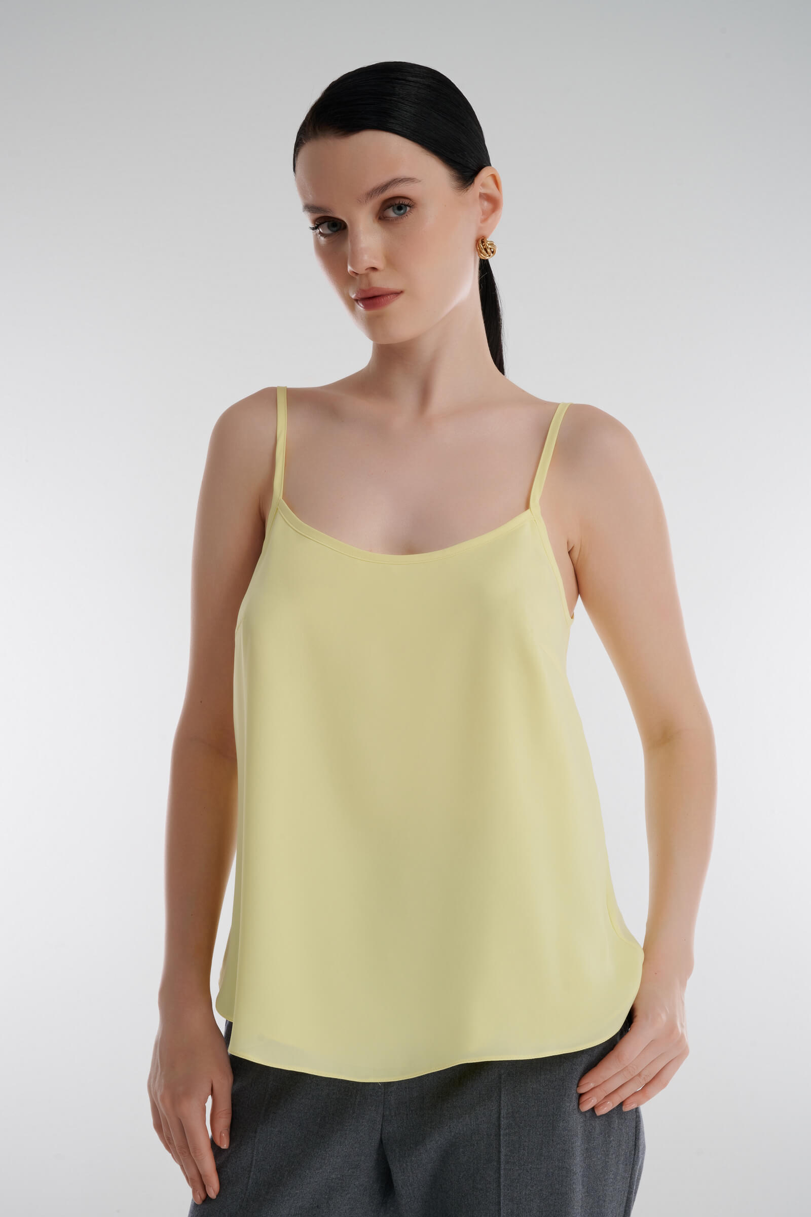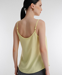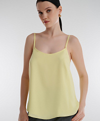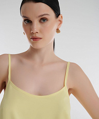 Минималистичный топ на бретелях станет универсальной основой для создания разных образов — от повседневных до вечерних. Мягкий струящийся материал красиво драпируется и обеспечивает комфорт. Благодаря двойному слою ткани спереди модель не просвечивает и сохраняет аккуратный силуэт.