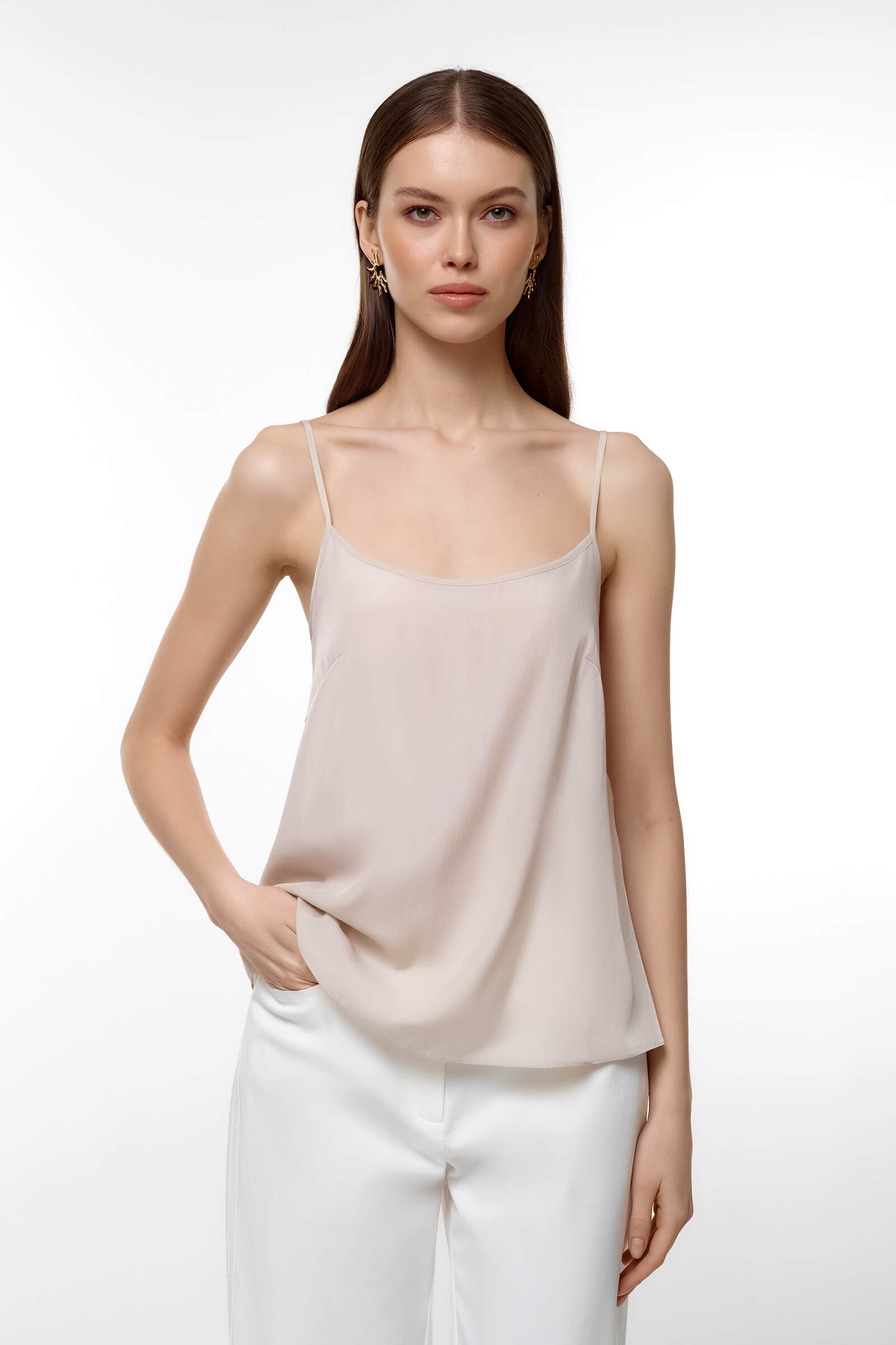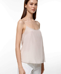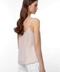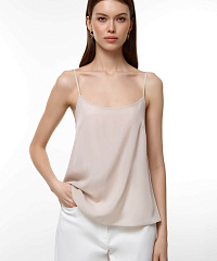 Минималистичный топ на бретелях станет универсальной основой для создания разных образов — от повседневных до вечерних. Мягкий струящийся материал красиво драпируется и обеспечивает комфорт. Благодаря двойному слою ткани спереди модель не просвечивает и сохраняет аккуратный силуэт.