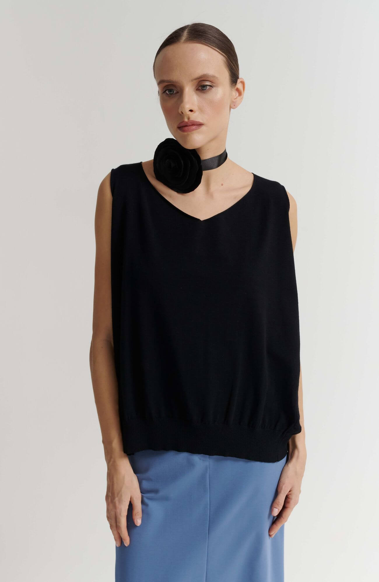Топ от бренда Sarah Pacini станет стильной частью как повседневных, так и деловых и вечерних образов. Модель свободного кроя выполнена из тонкого и приятного на ощупь трикотажа. Носите топ навыпуск или слегка заправив в брюки или юбки.