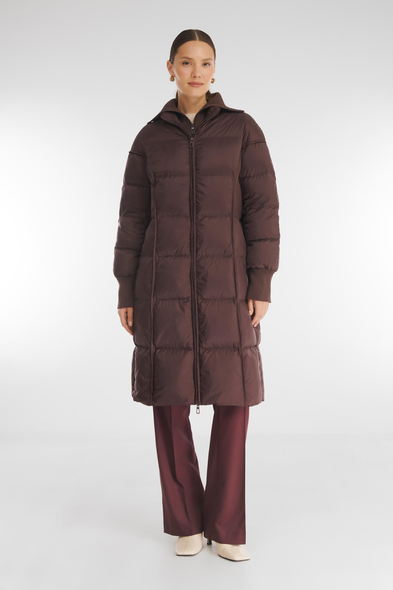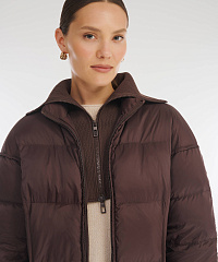 Пуховое пальто с манишкой в рубчик Caterina Leman