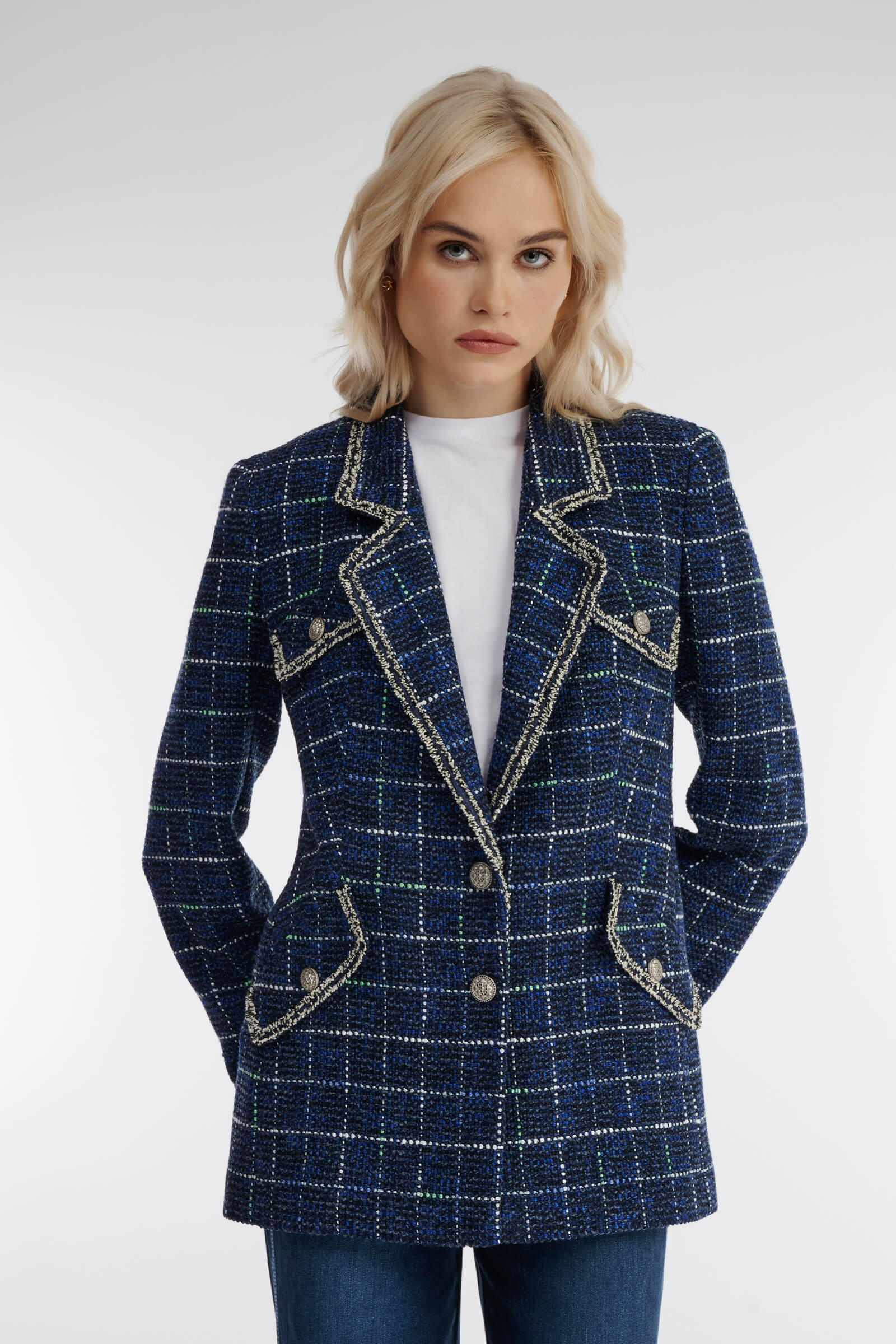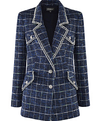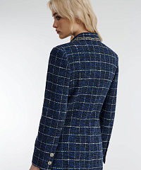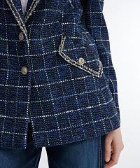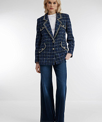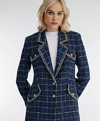 Однобортный пиджак из мягкого букле – вневременная классика. Сочетается со многими поясными изделиями: юбками и брюками разных фасонов. Элегантная модель, идеально подходящая для офиса, может мгновенно трансформироваться, если подобрать к ней нарядную юбку с люрексом или атласные брюки. Умерить «торжественность» модели могут простые прямые джинсы голубого цвета.