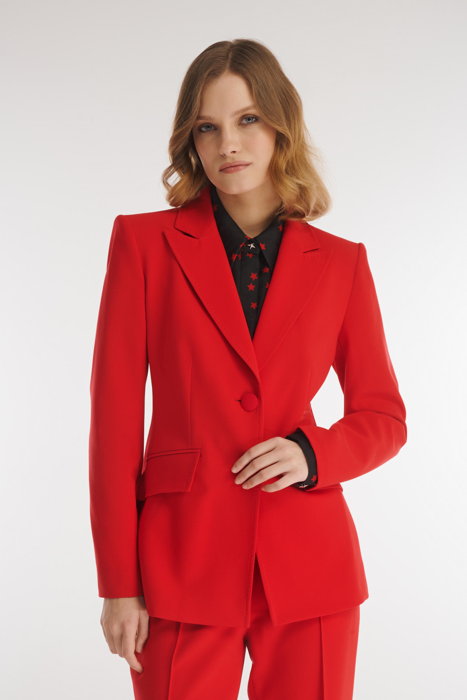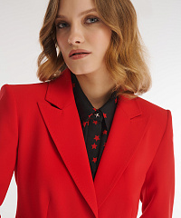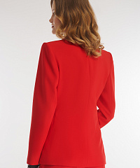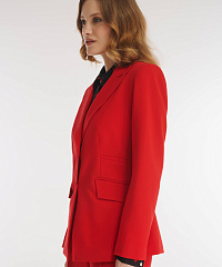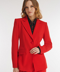 Пиджак из плотного костюмного материала на основе вискозы. Модель придется по душе ценителям элегантного дизайна. Все благодаря классическому английскому воротнику и отсутствию лишних деталей. Крой изделия создает мягкий акцент на талии. В комплект к пиджаку можно подобрать брюки из той же линейки.