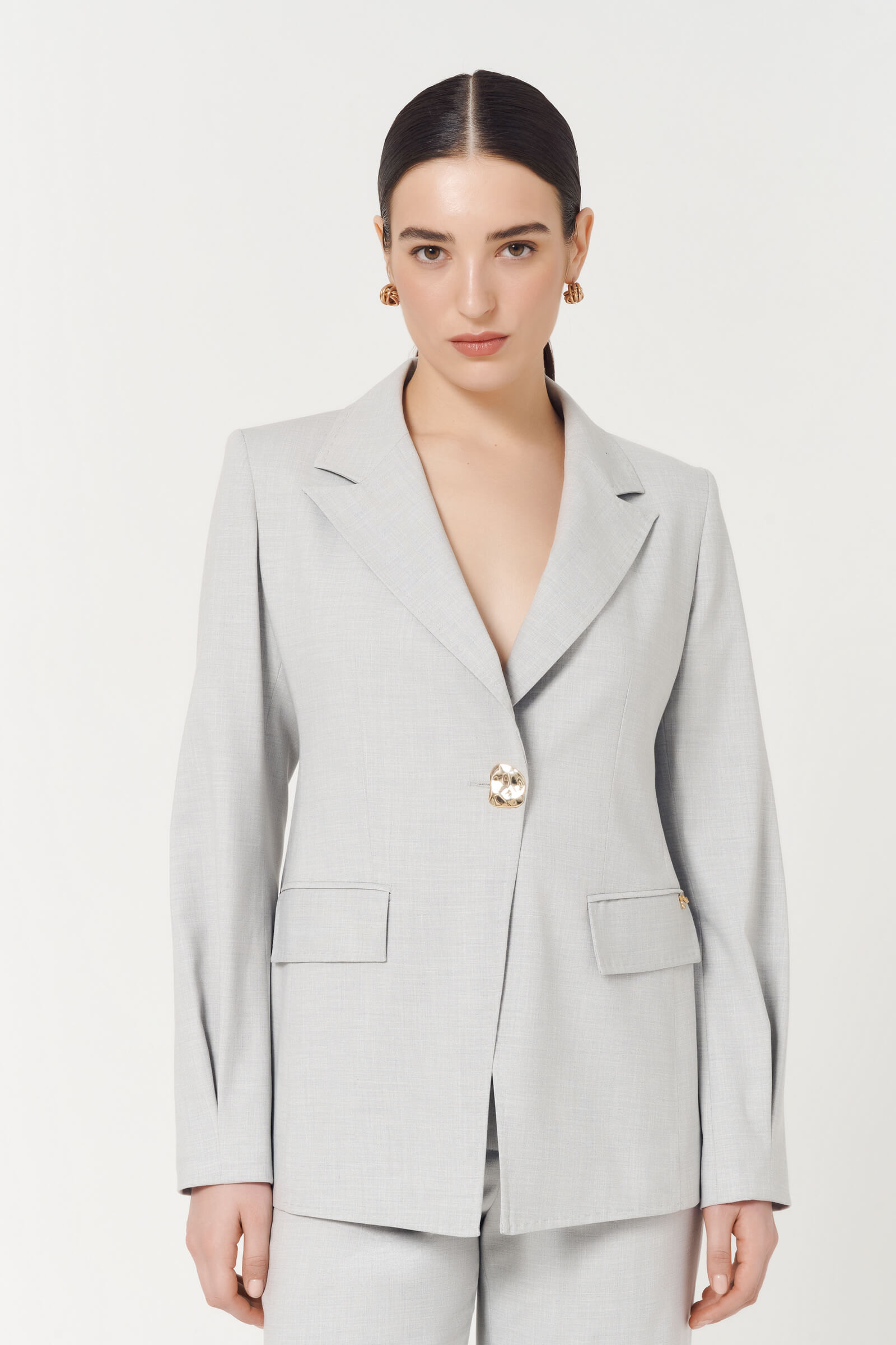 Модель с элегантным английским воротником застегивается на пуговицу. Эффектные вытачки на рукавах создают стильный акцент и дополнительный объем. Комбинируйте с брюками в тон из той же линейки.