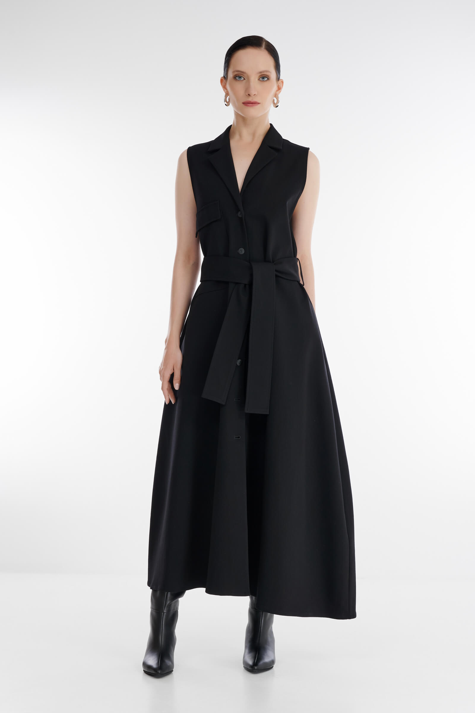 - Платье расклешенного кроя без рукавов с асимметричным подолом