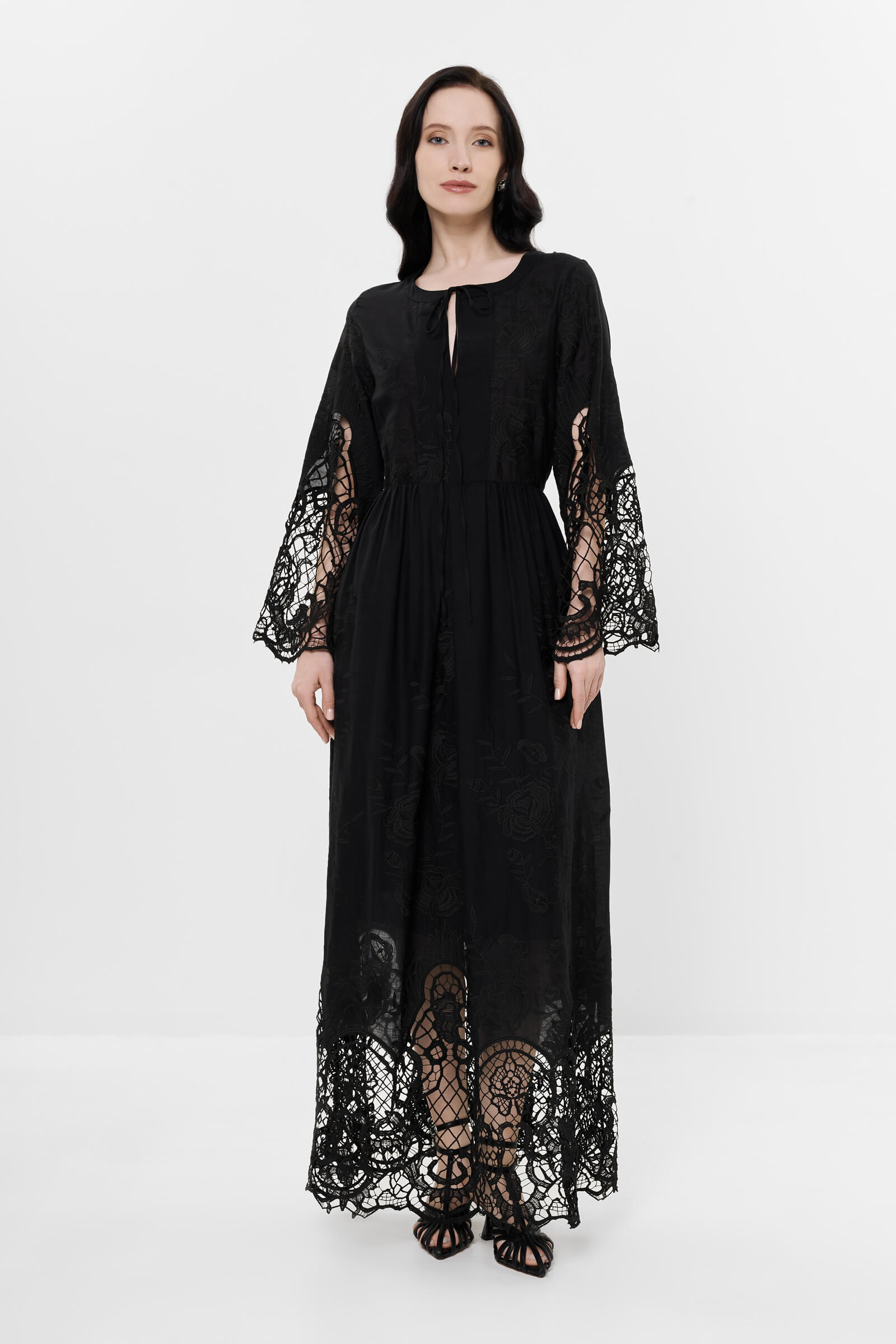 Длинное хлопковое платье с кружевной отделкой Milva Mi