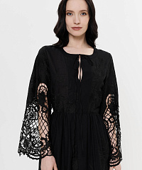 - Рукава и подол украшены ажурным хлопковым кружевом с фигурными краями
