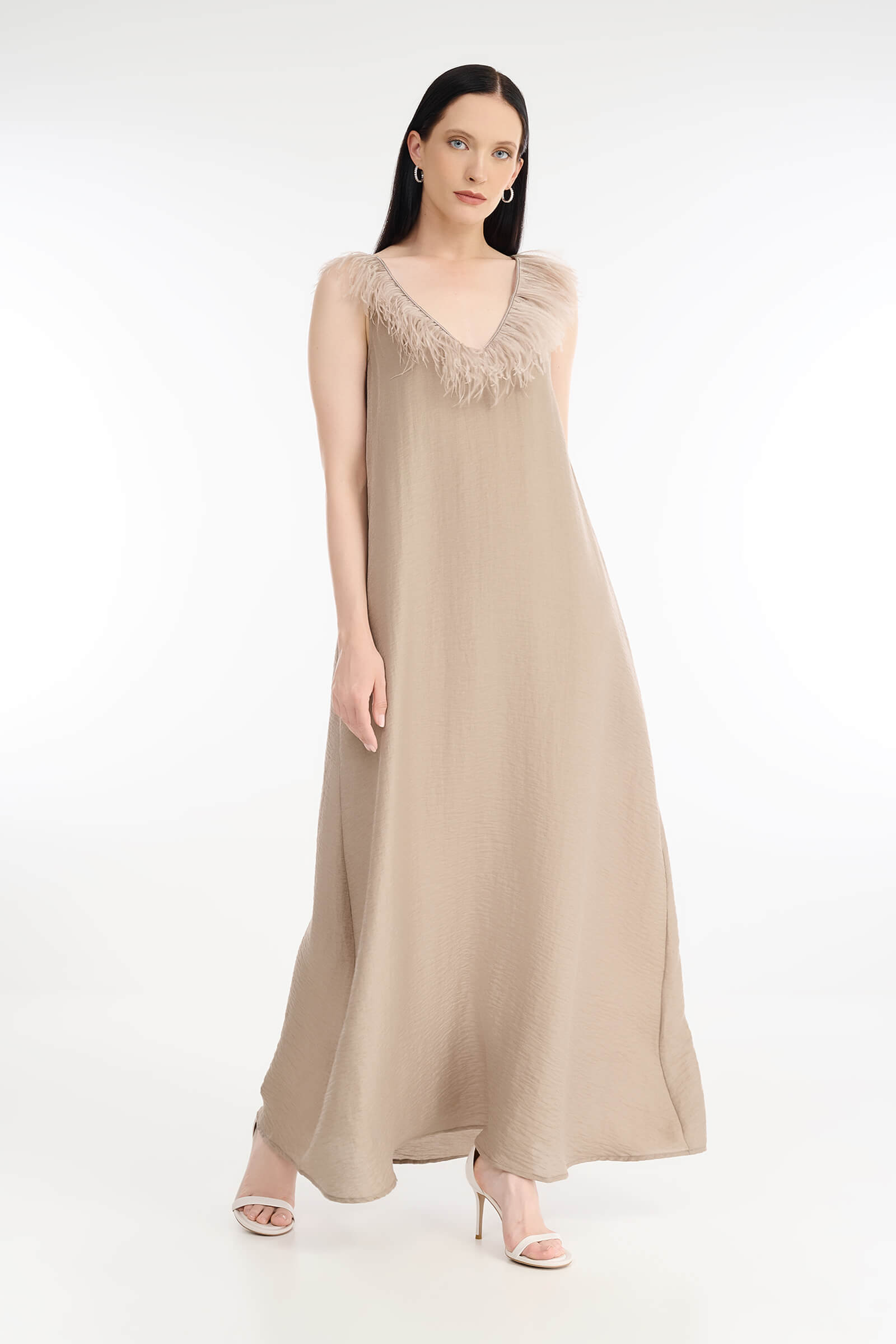 Платье макси с перьями Rocco Ragni