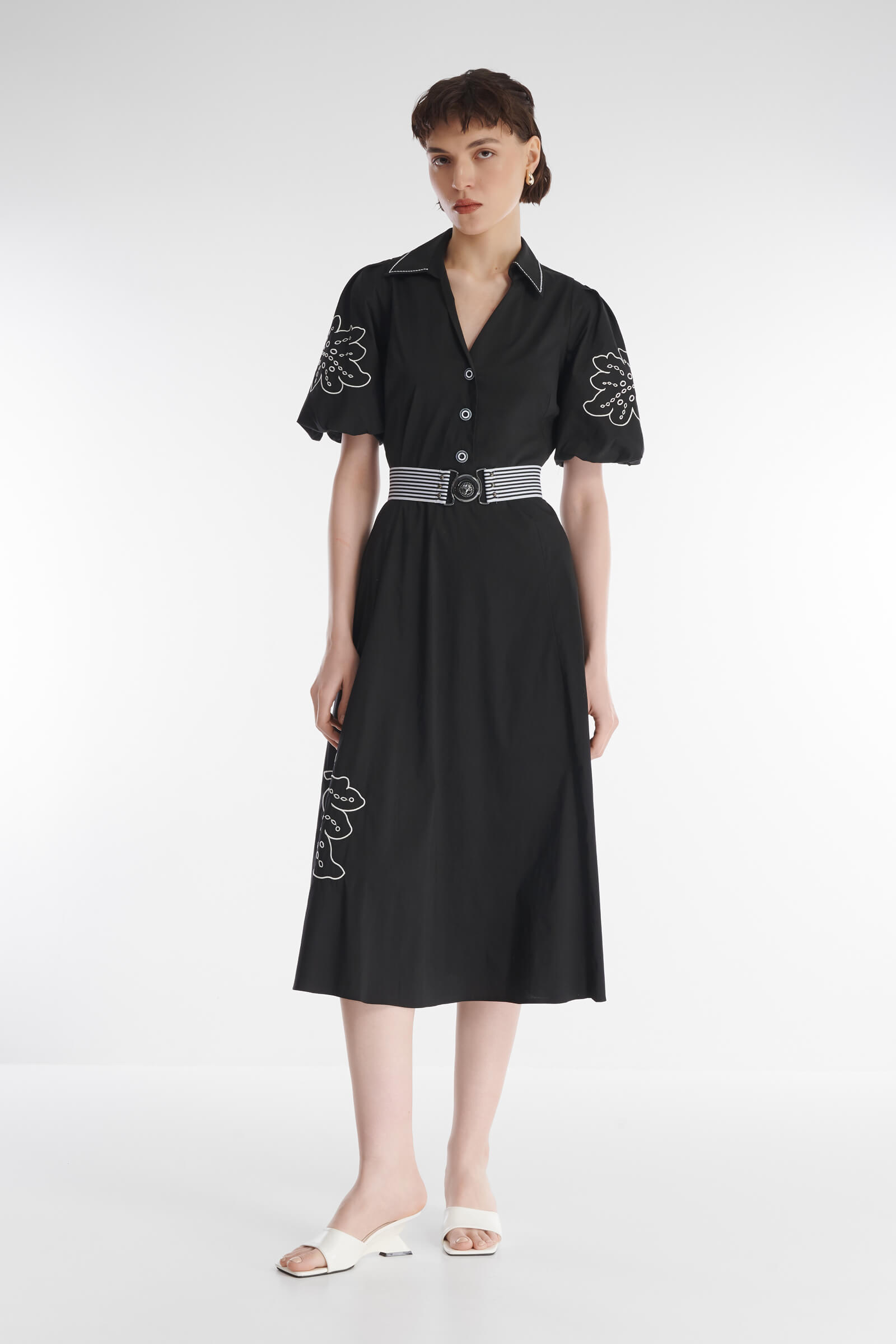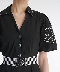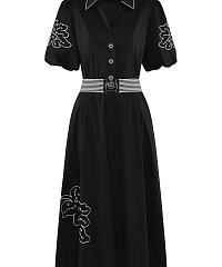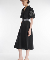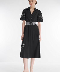 Хлопковое платье — незаменимая деталь летнего гардероба. Легкий материал отлично пропускает воздух и крайне приятен для кожи. Пышные рукава-фонарики и расклешенный крой с акцентом на талии добавляют образу игривости. Платье украшено высококачественной вышивкой с флористичными мотивами.