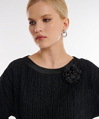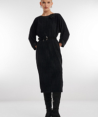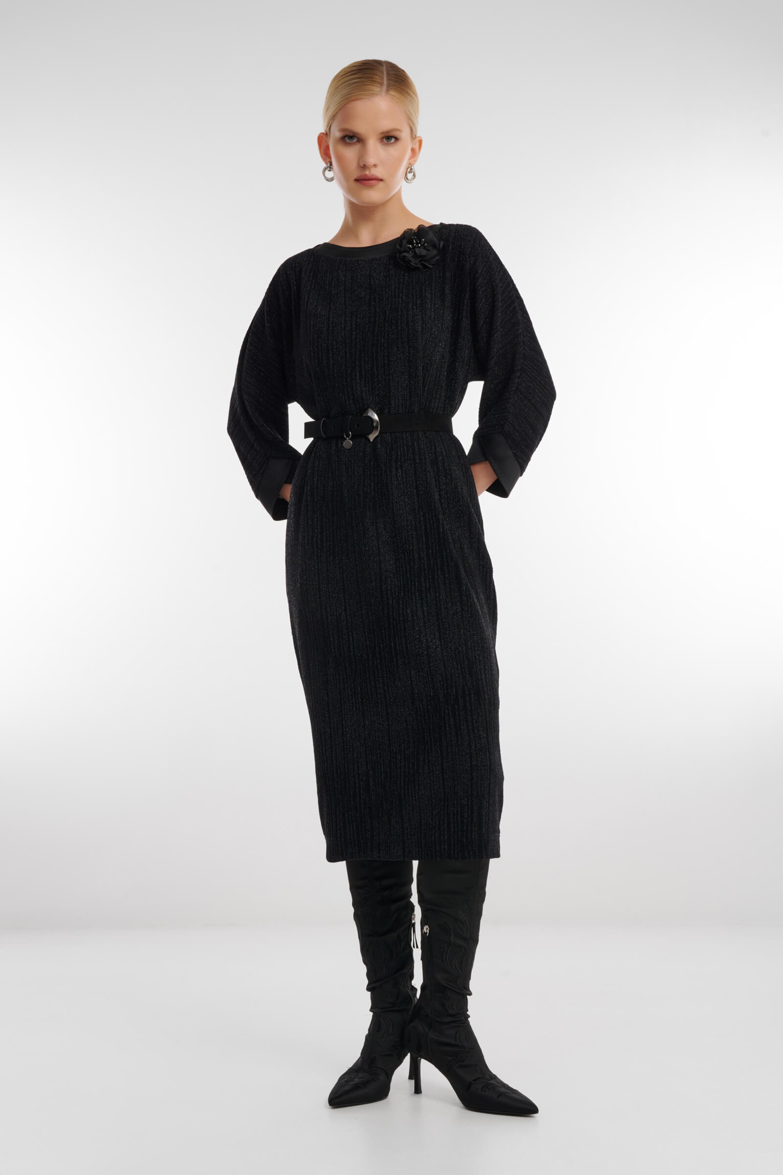 Элегантное платье подчёркивает женственность за счёт мягкого силуэта и утончённых деталей. Рукава длиной 7/8 создают изящную линию, а декоративный цветок-виньетка добавляет образу акцент нежности и деликатной выразительности. Универсальная модель для тех, кто ценит лёгкость, природную грацию и безупречный стиль.