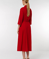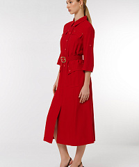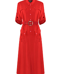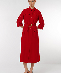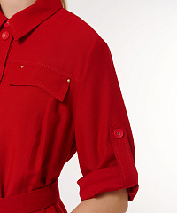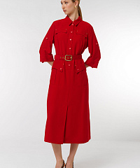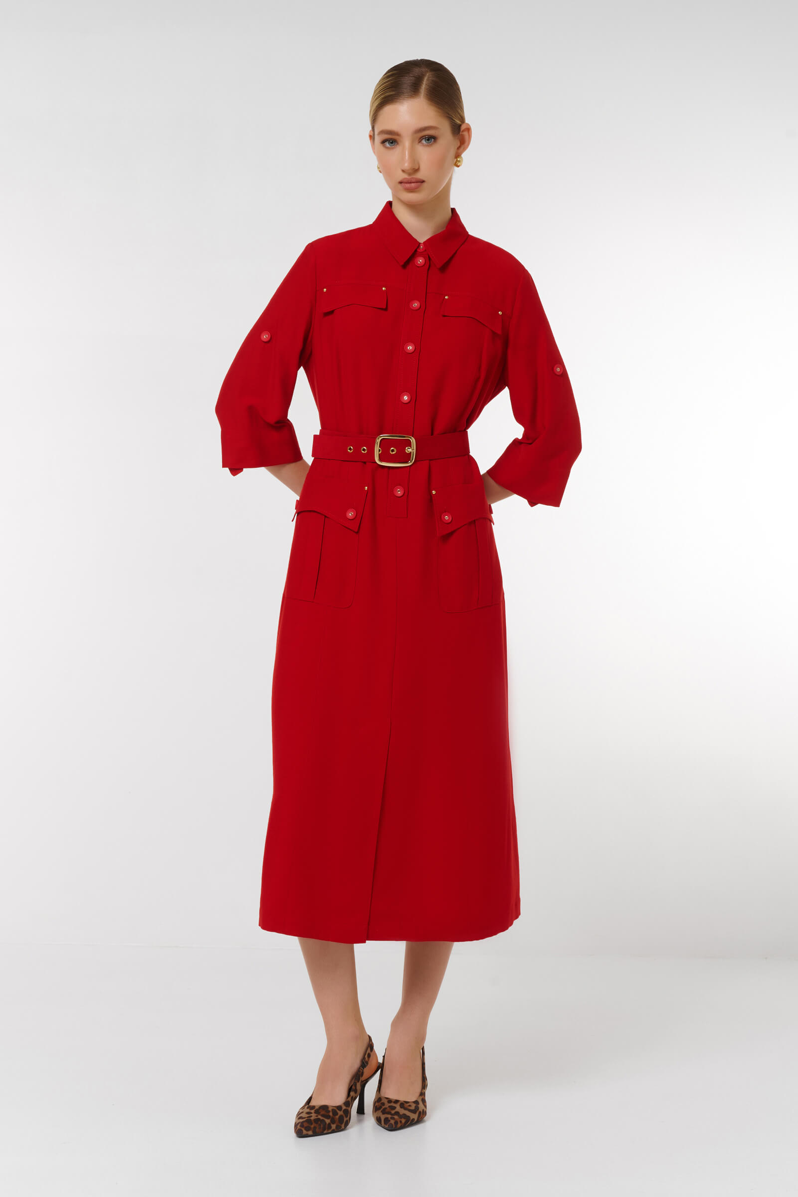 Платье прямого кроя и длины миди придает модели утонченный и элегантный вид.Рукава с манжетами добавляют стильности,а карманы на груди подчеркивают актуальные тренды. Это платье подойдет как для повседневной носки,так и для особых случаев.