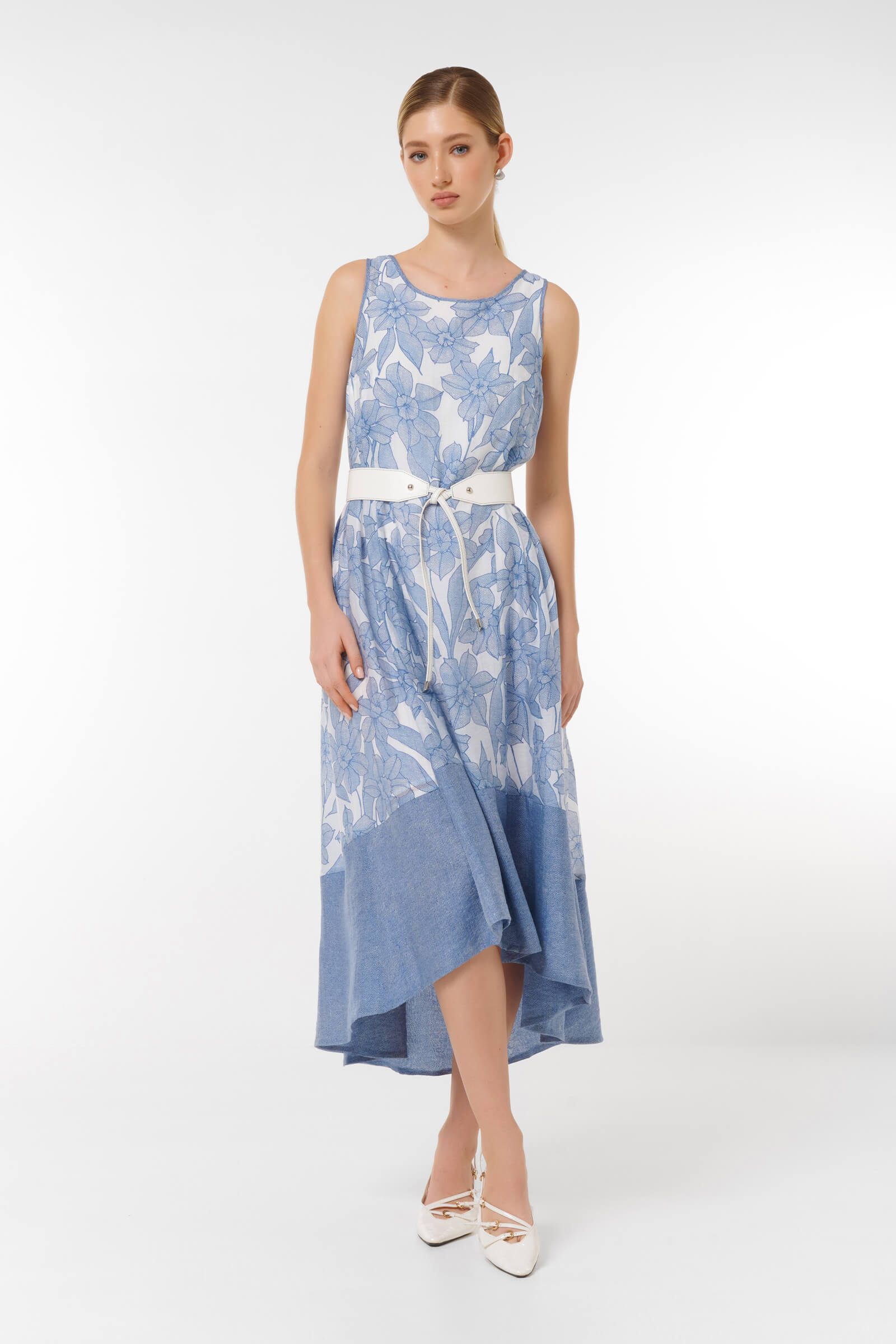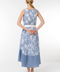 Платье с цветочным принтом придаст вам женственности и элегантности. Стильный асимметричный подол и удобный пояс подчеркивают силуэт, обеспечивая комфорт в любой ситуации.