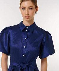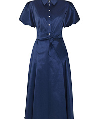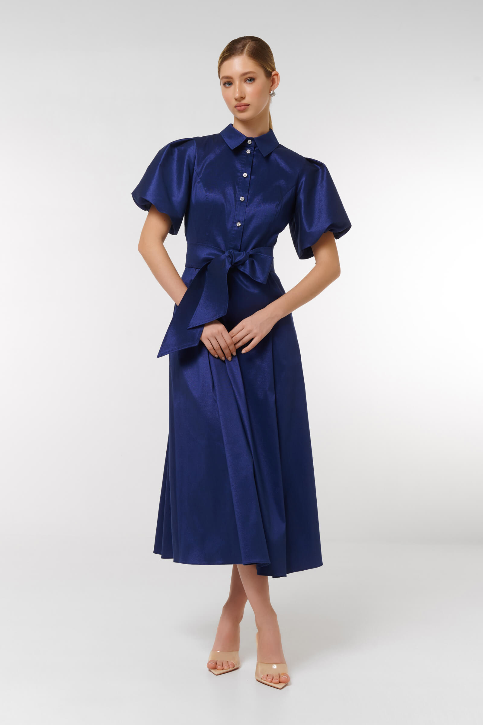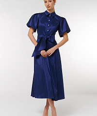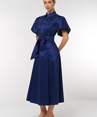 Платье миди с поясом- идеальный выбор для создания стильного образа.Короткие рукава и классический отложной воротник обеспечивают комфорт и воздушность. Застежка на пуговицы добавляет нотку утонченности, а пояс подчеркивает вашу талию, создавая элегантный силуэт.