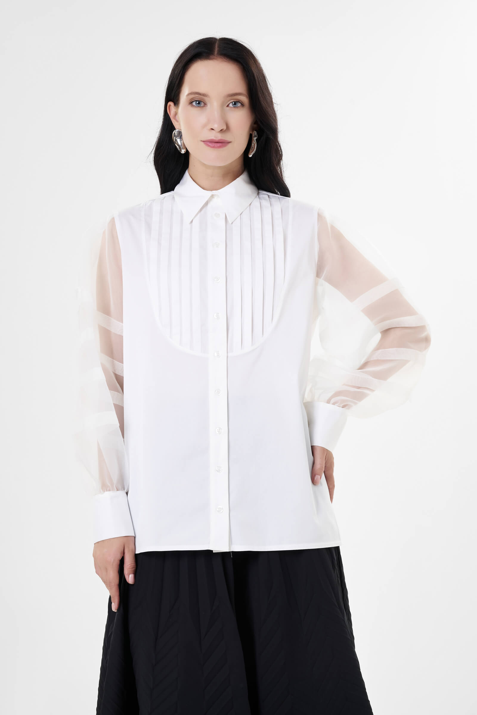 Хлопковая рубашка с прозрачными рукавами Milva Mi