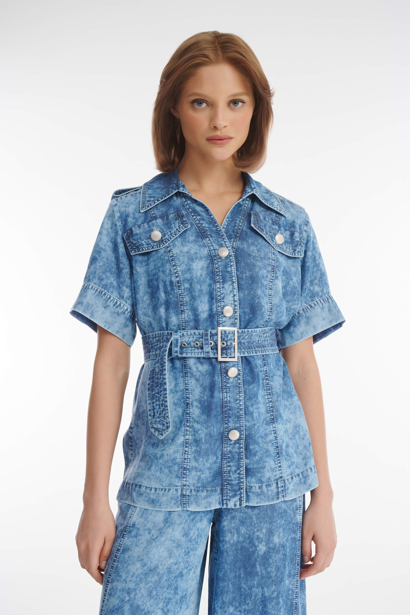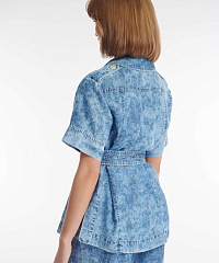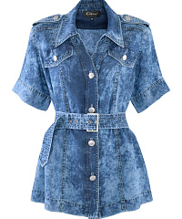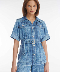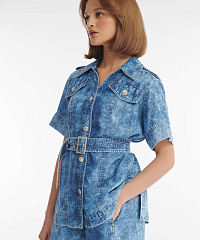 Актуальное прочтение классики — рубашка в стиле городского сафари с принтом тай дай. Модель сшита из нежной дышащей вискозы и гарантирует легкость и комфорт в самый жаркий летний день. Эффектные стилевые штрихи — погоны на плечах, клапаны карманов-обманок, принт, имитирующий вареную джинсу, позволят создать образ в котором сочетаются уверенность, свобода и изысканная небрежность. Пояс в комплекте поможет подчеркнуть талию, создавая женственный силуэт. Единым ансамблем жакет будет смотреться с широкими брюками из той же линейки, но не менее органично дополнит джинсы, легкие брюки, юбки.