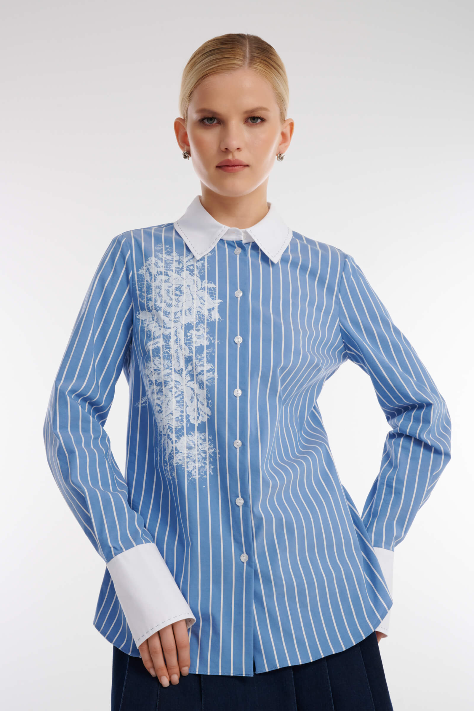 Рубашка в полоску с кружевом Caterina Leman