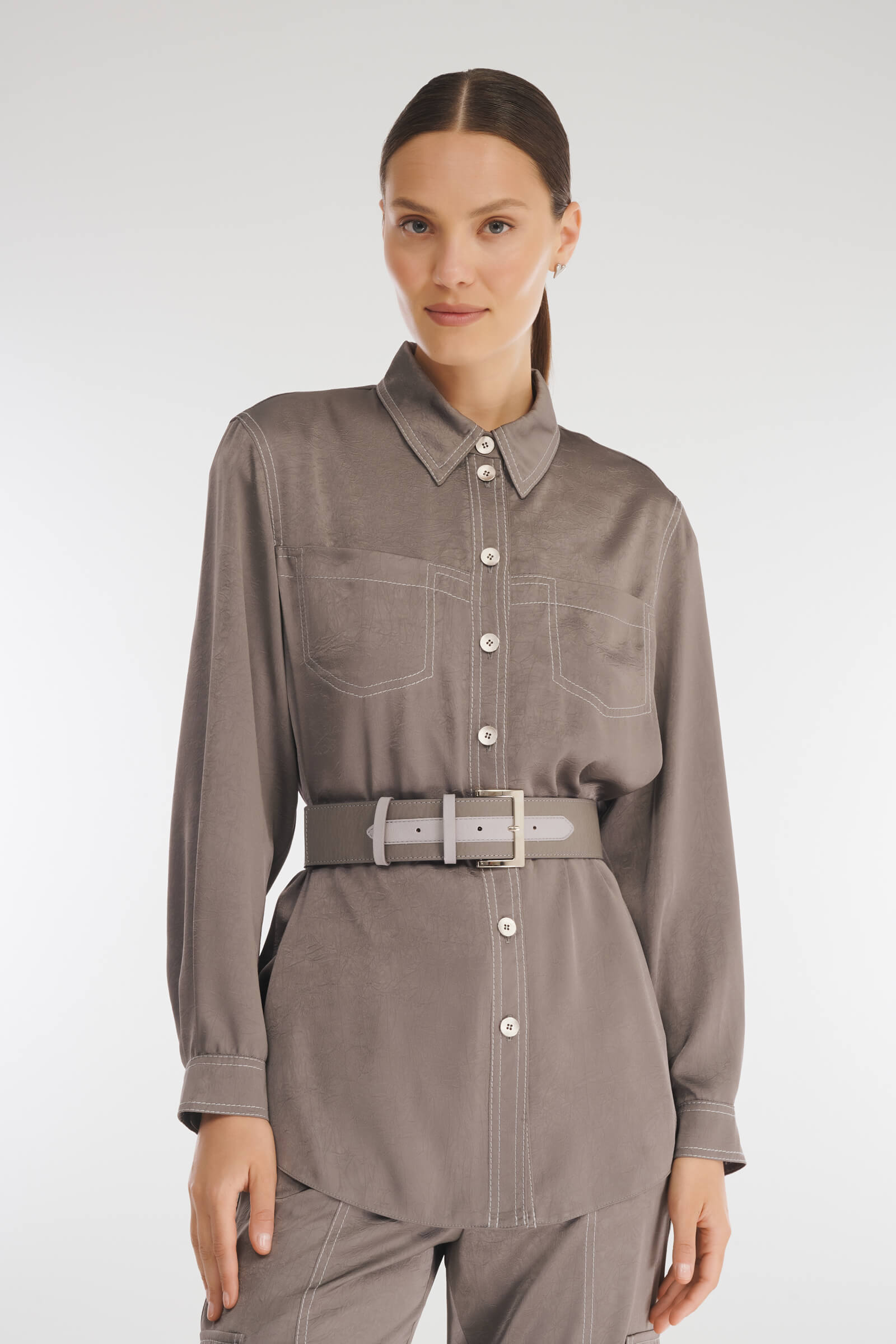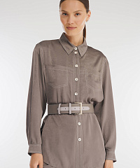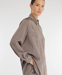 Рубашка из нежной струящейся поливискозы. Свободный крой не сковывает движений, обеспечивая комфорт во время носки. Контрастная декоративная строчка расставляет акценты. В комплект к рубашке можно подобрать брюки из той же линейки для создания готового образа.