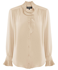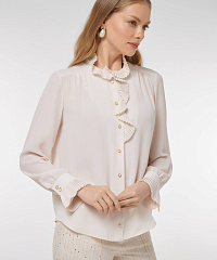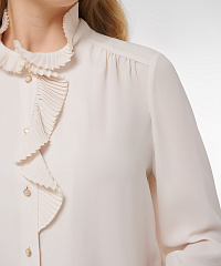 Эффектная рубашка с мягкими рюшами становится акцентом образа, создавая женственный и утончённый силуэт. Лёгкий материал на основе вискозы красиво драпируется и комфортно ощущается на коже, добавляя образу воздушности и лёгкого шика.