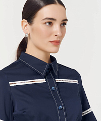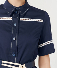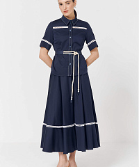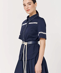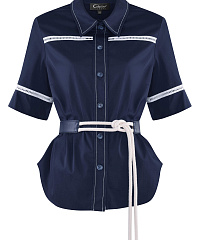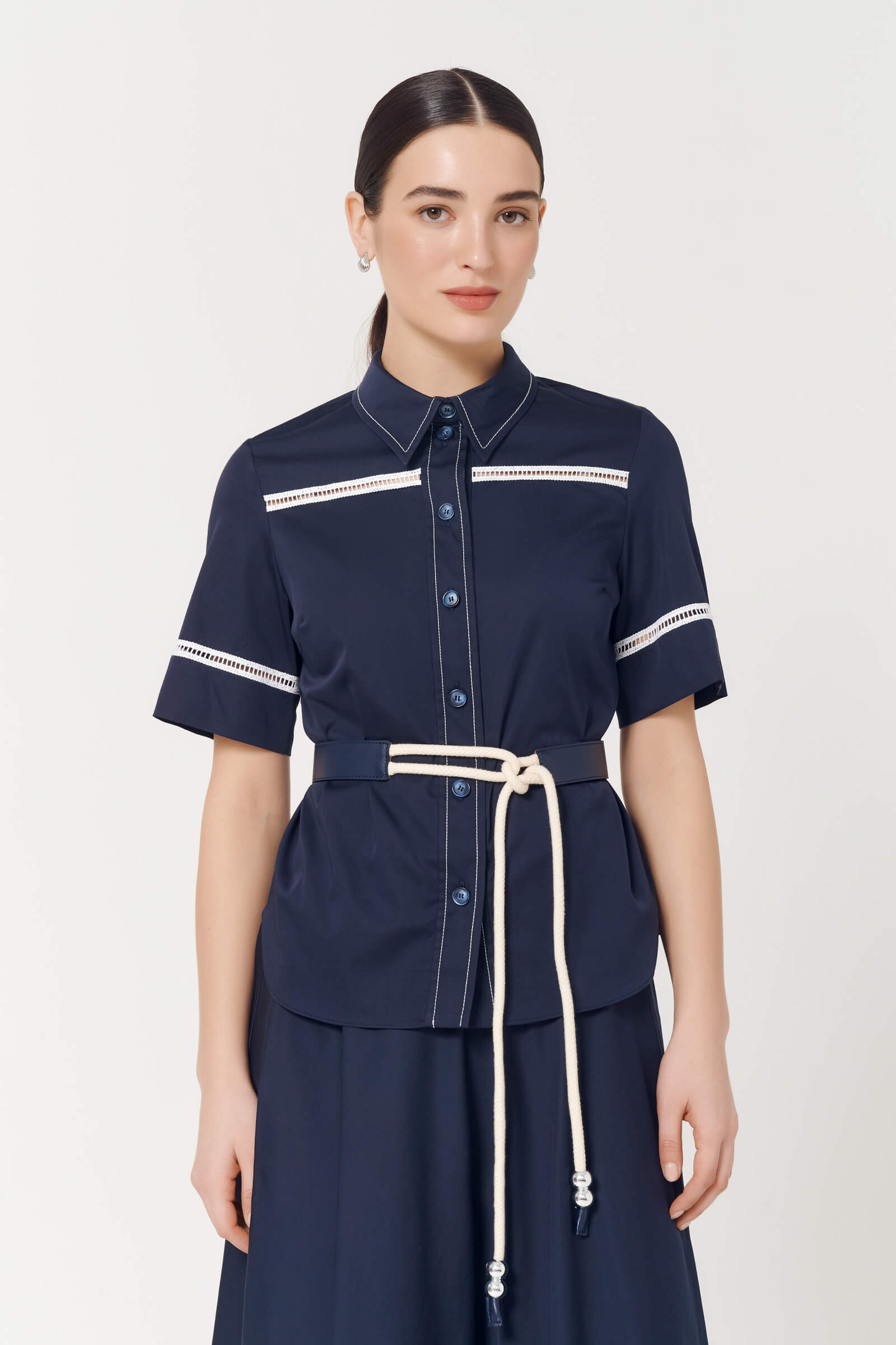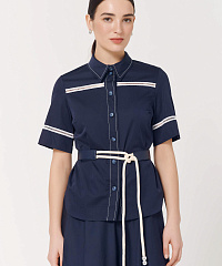 Легкая рубашка в морском стиле с коротким рукавом, будет элегантно сочетаться с юбкой из той же линейки.