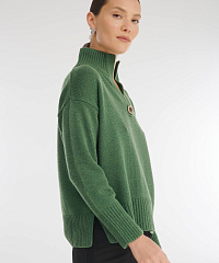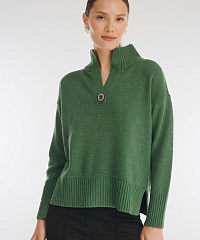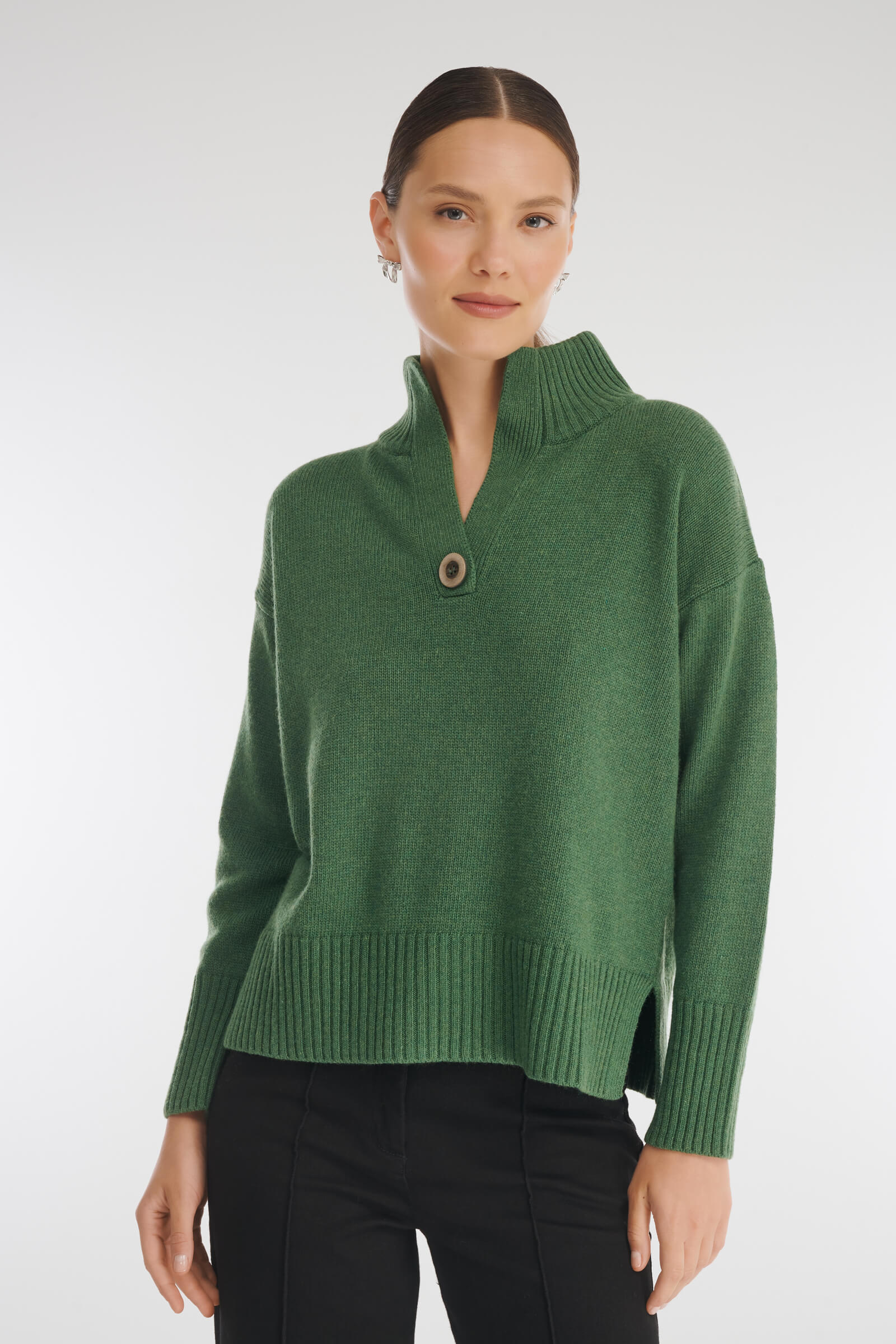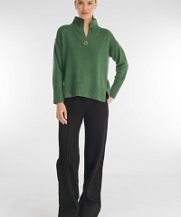 Свитер с воротником и V-образным вырезом не только подарит комфорт в холодный период, но и позволит создать стильные многослойные комбинации. Носите изделие самостоятельно или в паре с минималистичной майкой или футболкой. Мягкий и очень теплый материал из шерсти мериноса, шелка и кашемира отличается высоким качеством, мягок и приятен на ощупь.