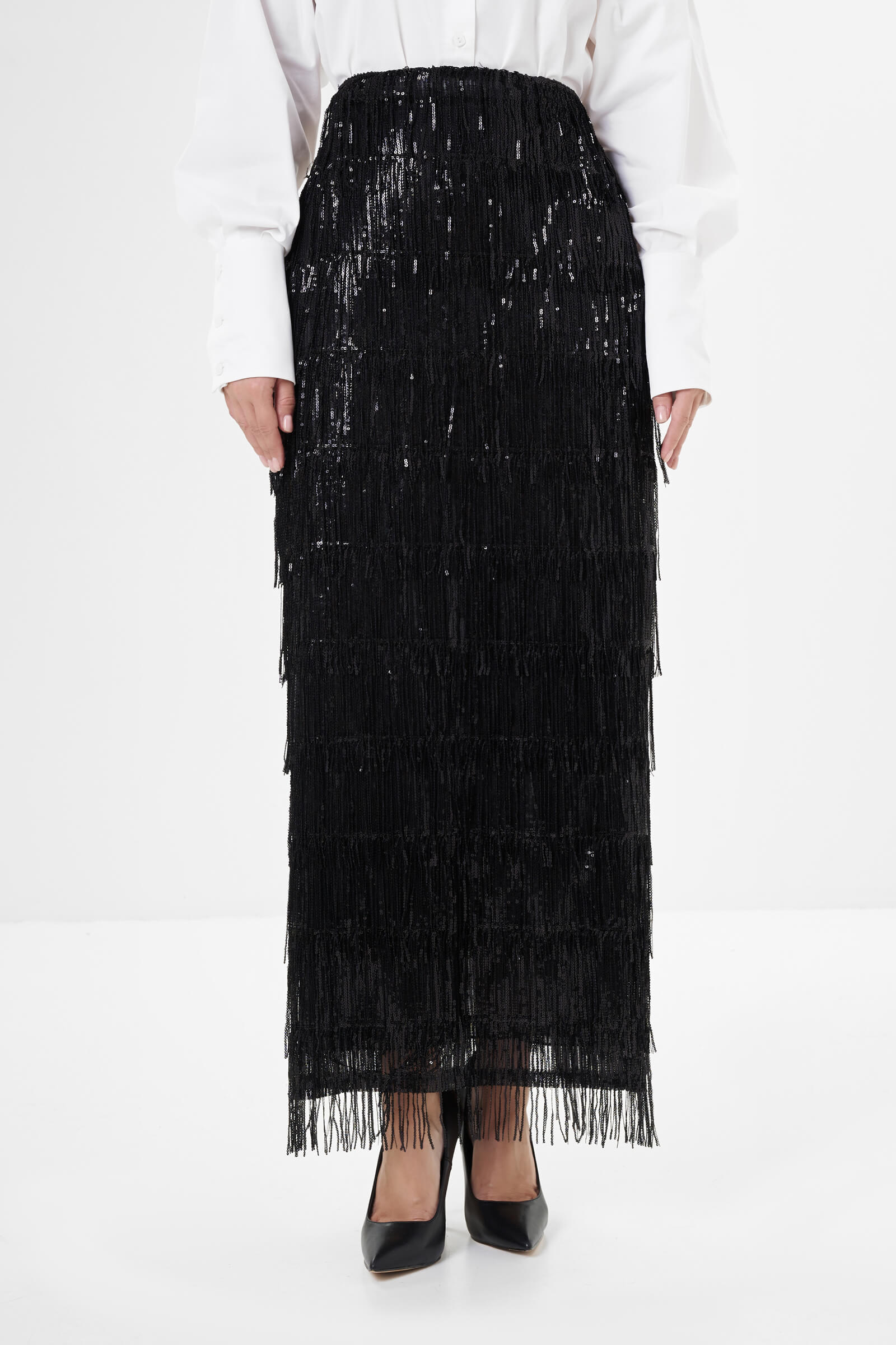 Юбка макси с бахромой из пайеток Milva Mi