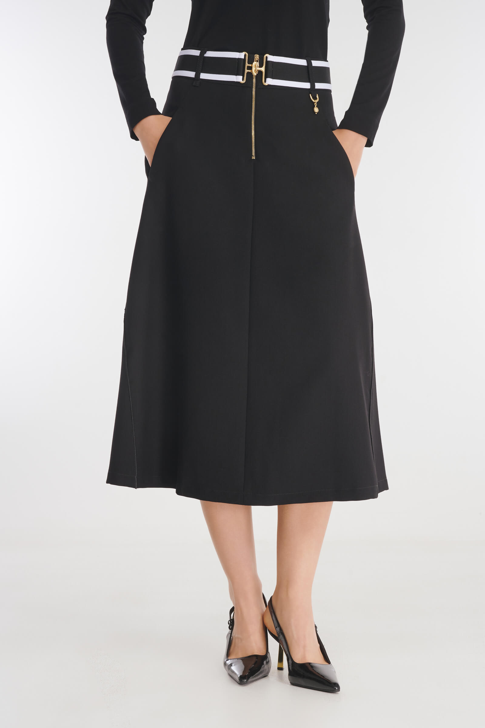 Расклешенная юбка с декоративными швами — для стильных повседневных образов. Модель выполнена из плотной смесовой вискозы. Прорезные карманы отвечают за функциональность. Для большего комфорта юбка дополнена гладкой подкладкой из вискозы с антистатическим свойством.