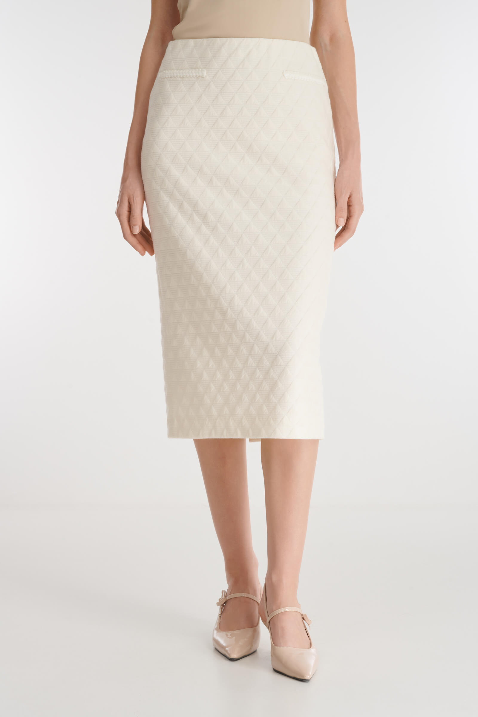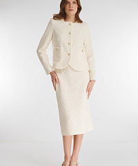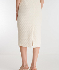 Для создания юбки был выбран сложный фактурный материал на основе хлопка: мягкий, дышащий и износостойкий. Крой модели красиво подчеркивает фигуру, а пояс со скрытой резинкой гарантирует комфортную посадку. Дополнить образ с юбкой можно жакетом в тон из той же линейки.