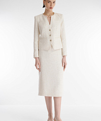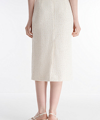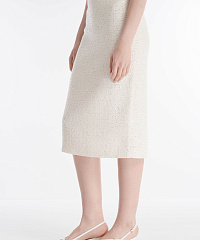 Юбка-карандаш классического силуэта. Застежка на скрытую молнию на спине. Юбка декорирована мерцающими микропайетками, деликатный блеск которых не перегружает образ, делая изделие уместным как для особых случаев, так и повседневных аутфитов.
