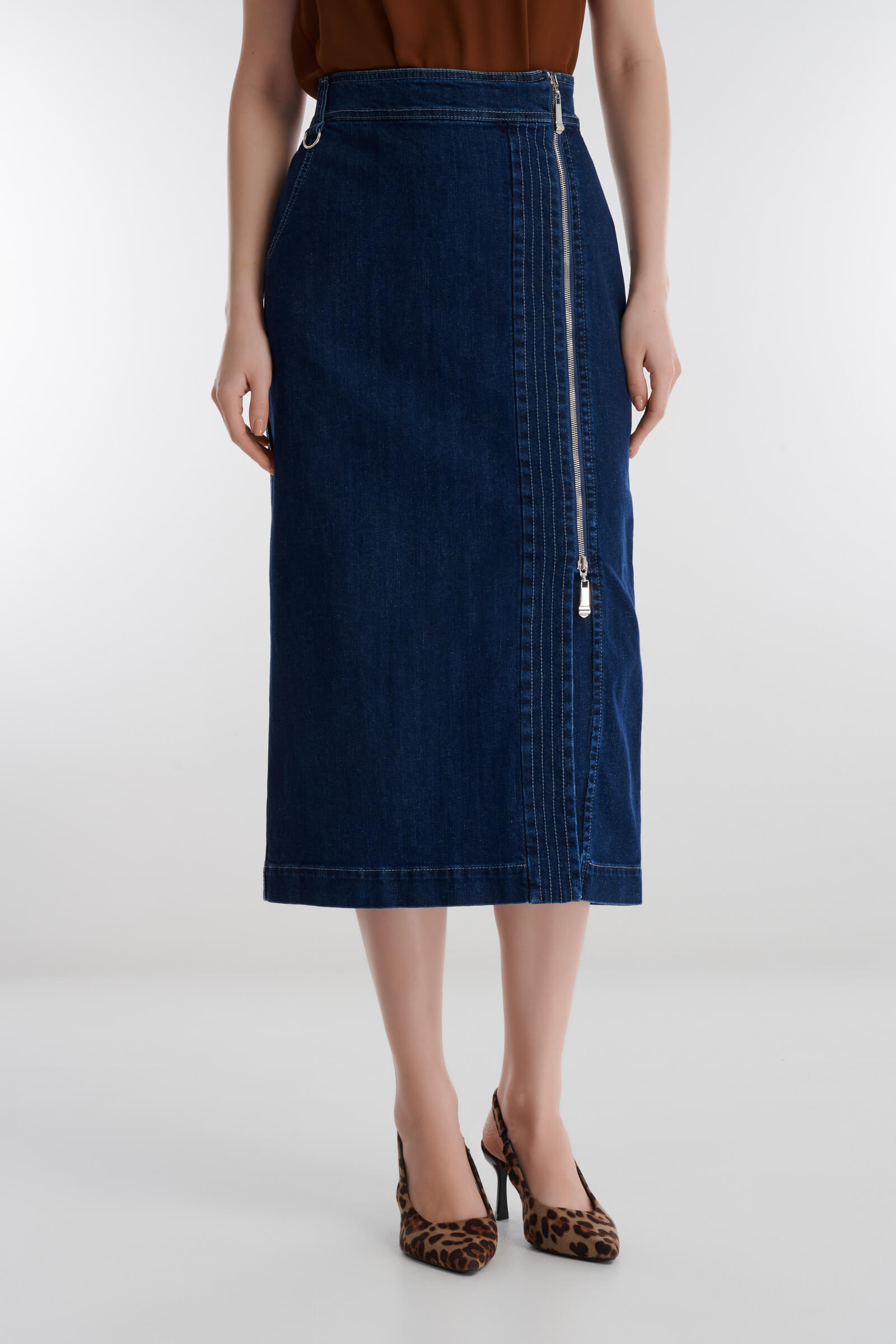 Деним остается одним из главных трендов последних сезонов, поэтому дизайнеры все чаще выходят за рамки создания исключительно джинсов. Мастера бренда предлагают добавить в базовую капсулу стильную джинсовую юбку. Дышащий материал на основе хлопка обеспечивает комфорт, а универсальный крой — безупречную посадку. Модель без труда сочетается с рубашками, топами и трикотажем.
