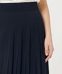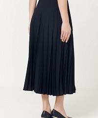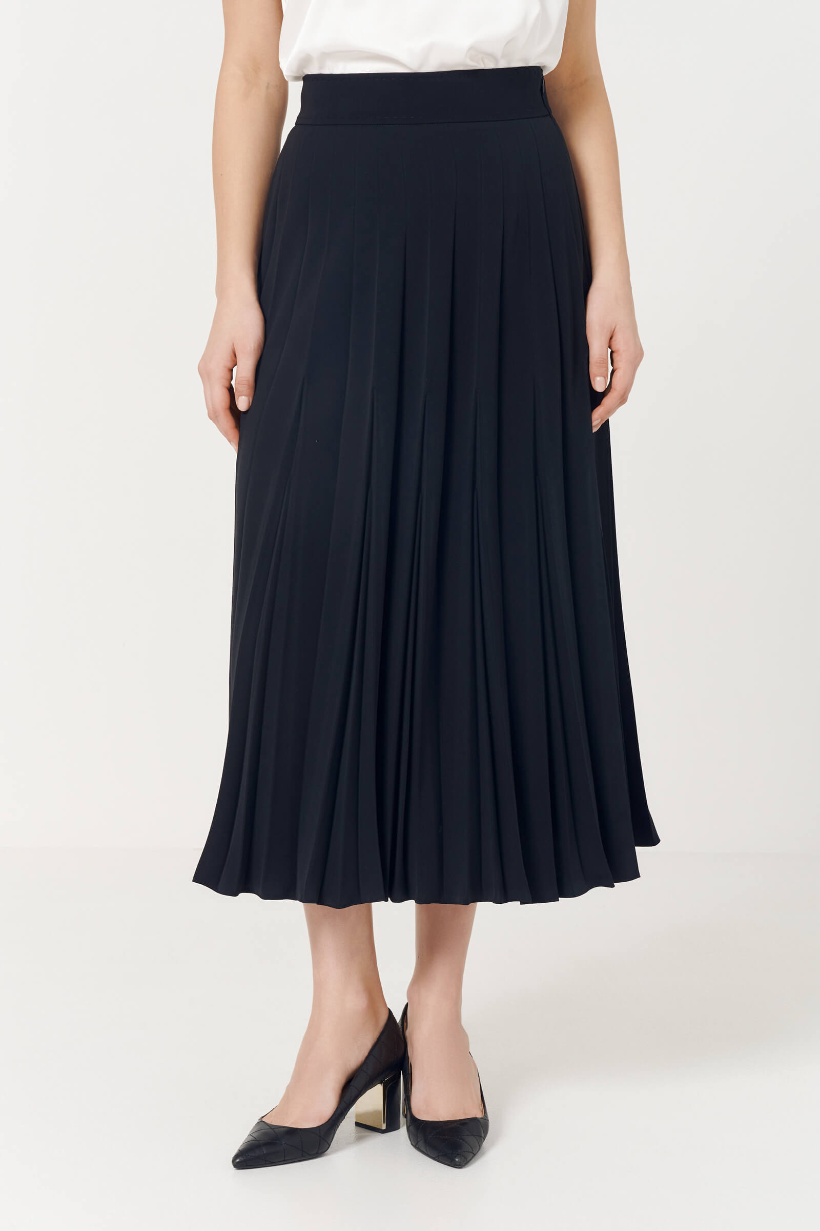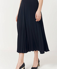 Для создания плиссированной юбки был выбран материал на основе вискозы, который отлично сохраняет форму. За стабильность силуэта и красивый объем отвечает подкладка, дополненная специальными оборками из тюля. Пояс на резинке обеспечивает комфортную посадку.