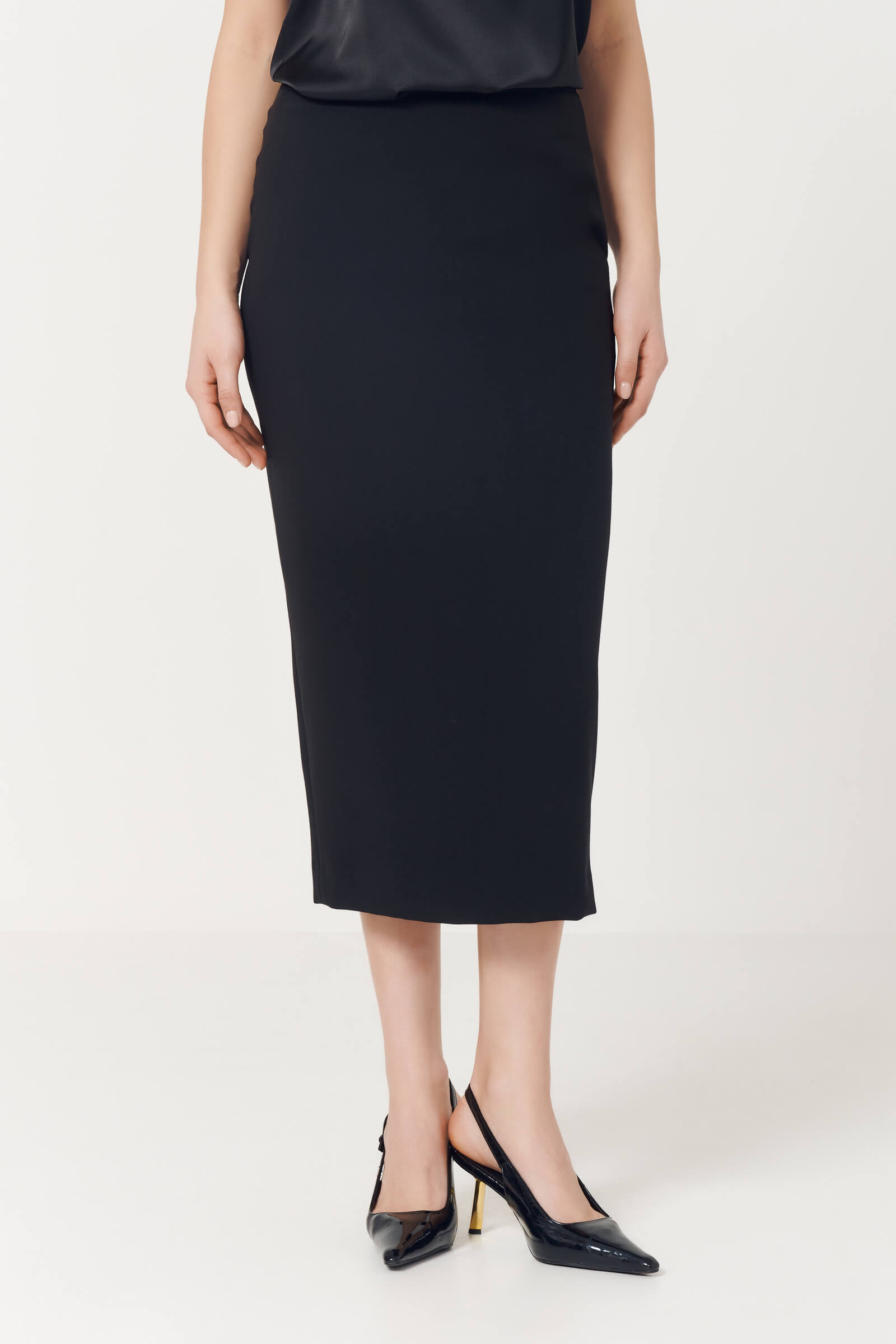 Юбка-карандаш — идеальное решение на случай, когда кажется, что надеть нечего. Лаконичная модель легко сочетается с трикотажем, блузками или жакетом в тон из той же линии, создавая элегантный тотал-лук.