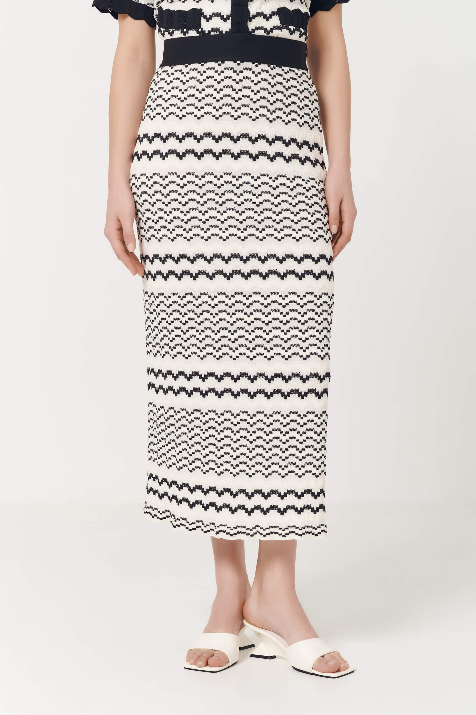 Длинная юбка из трикотажа с узором станет отличным дополнением к повседневному образу. Эластичный пояс не передавливает линию талии, а приталенный силуэт изящно подчеркнет фигуру.