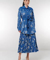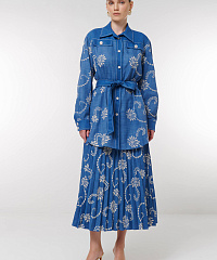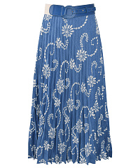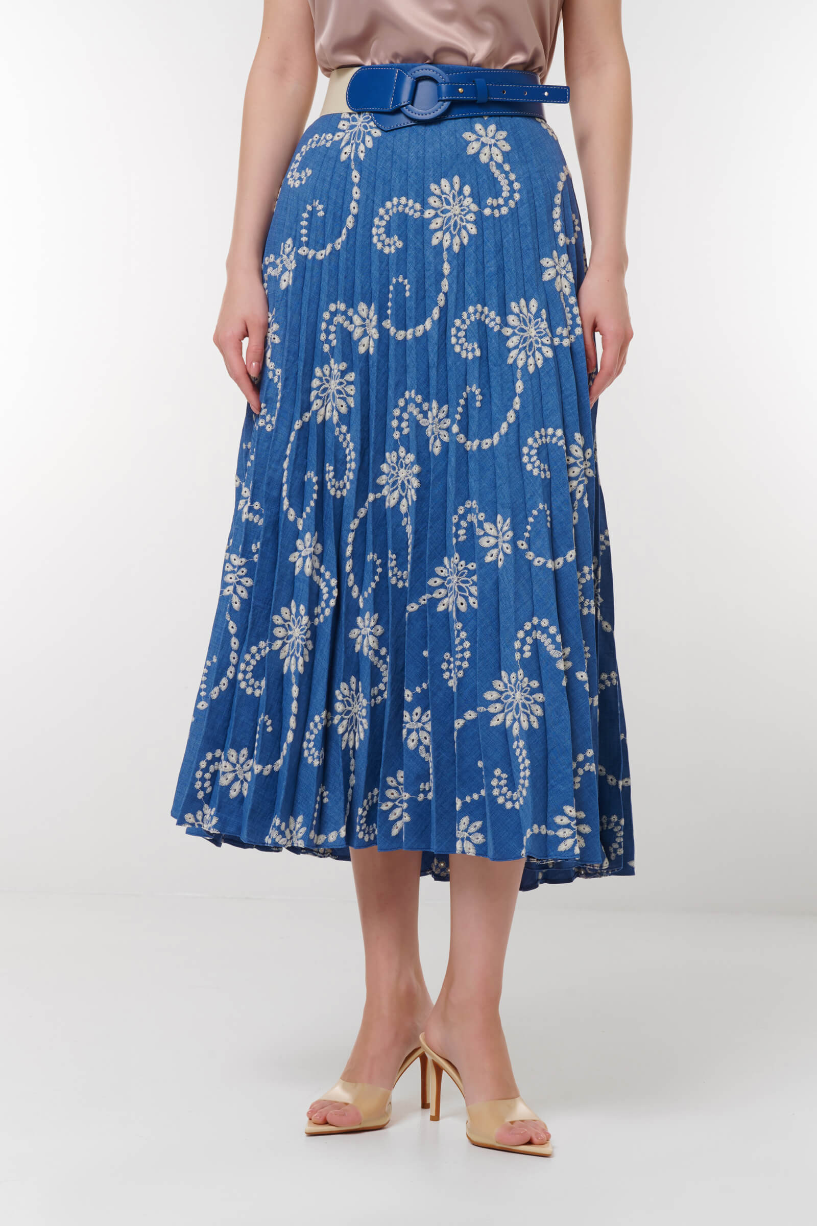 Потрясающей юбкой с цветочной вышивкой. Яркий синий цвет в сочетании с изысканной белой вышивкой делает юбку настоящим акцентом вашего наряда. Плиссировка добавляет легкости и воздушности, а широкий пояс с пряжкой подчеркивает талию. Эта юбка идеально подходит как для повседневной носки, так и для особых случаев. Создайте неповторимый образ с этой удивительной моделью!