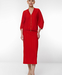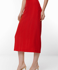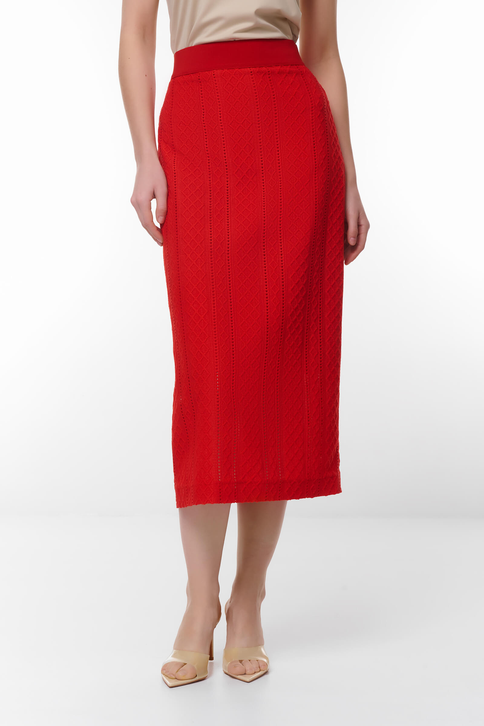 Эта ярко-красная юбка-карандаш из трикотажа — идеальный выбор для женщин, стремящихся к стилю и комфорту. Благодаря эластичному поясу и средней длине, юбка отлично подчеркивает фигуру, создавая стильный силуэт. Уникальный узор в виде ромбов добавляет изюминку и делает изделие ярким акцентом в вашем гардеробе.Создавайте модные образы с этой юбкой, дополняя её эффектными блузами или жакетами!