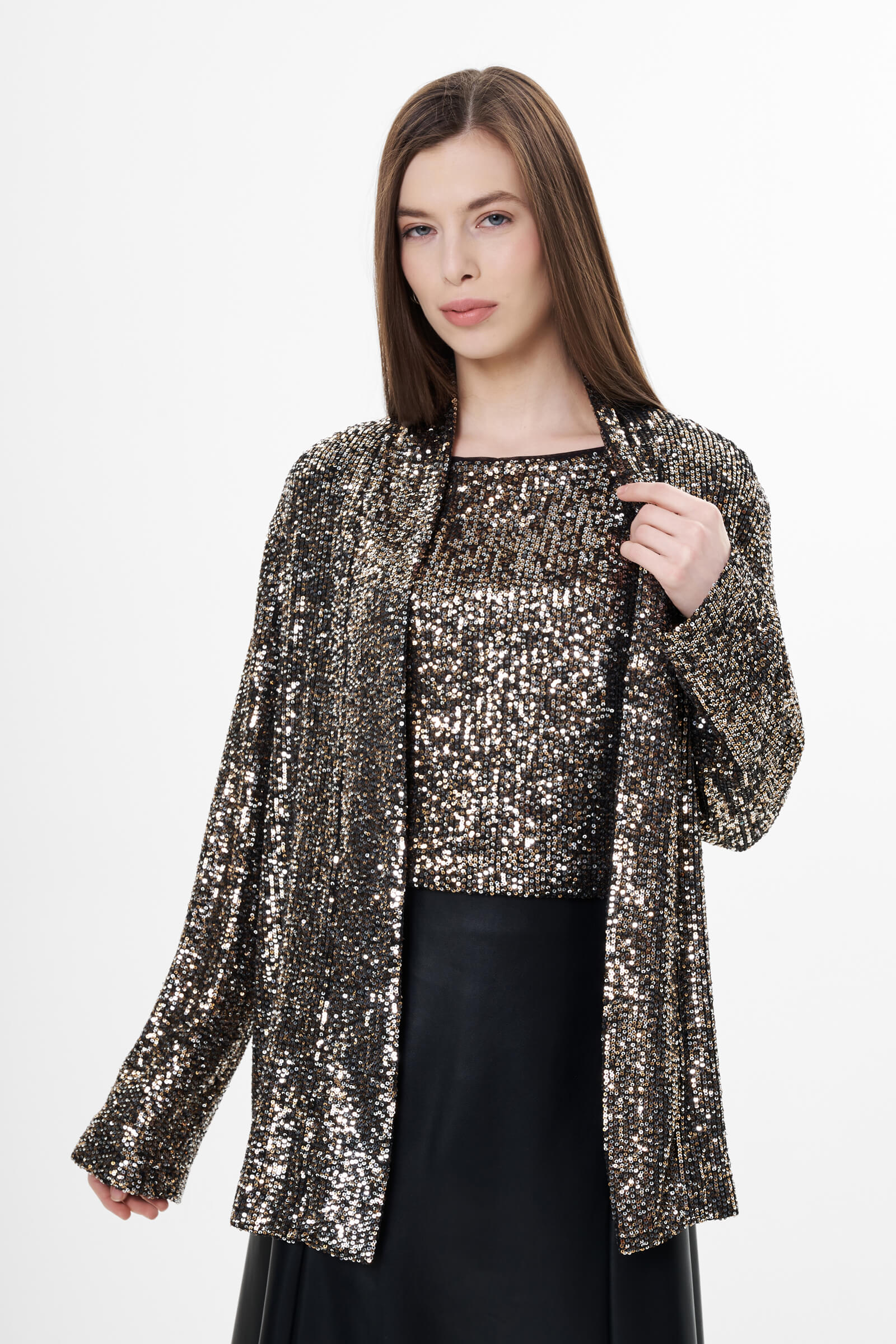 - Жакет полностью декорирован пайетками