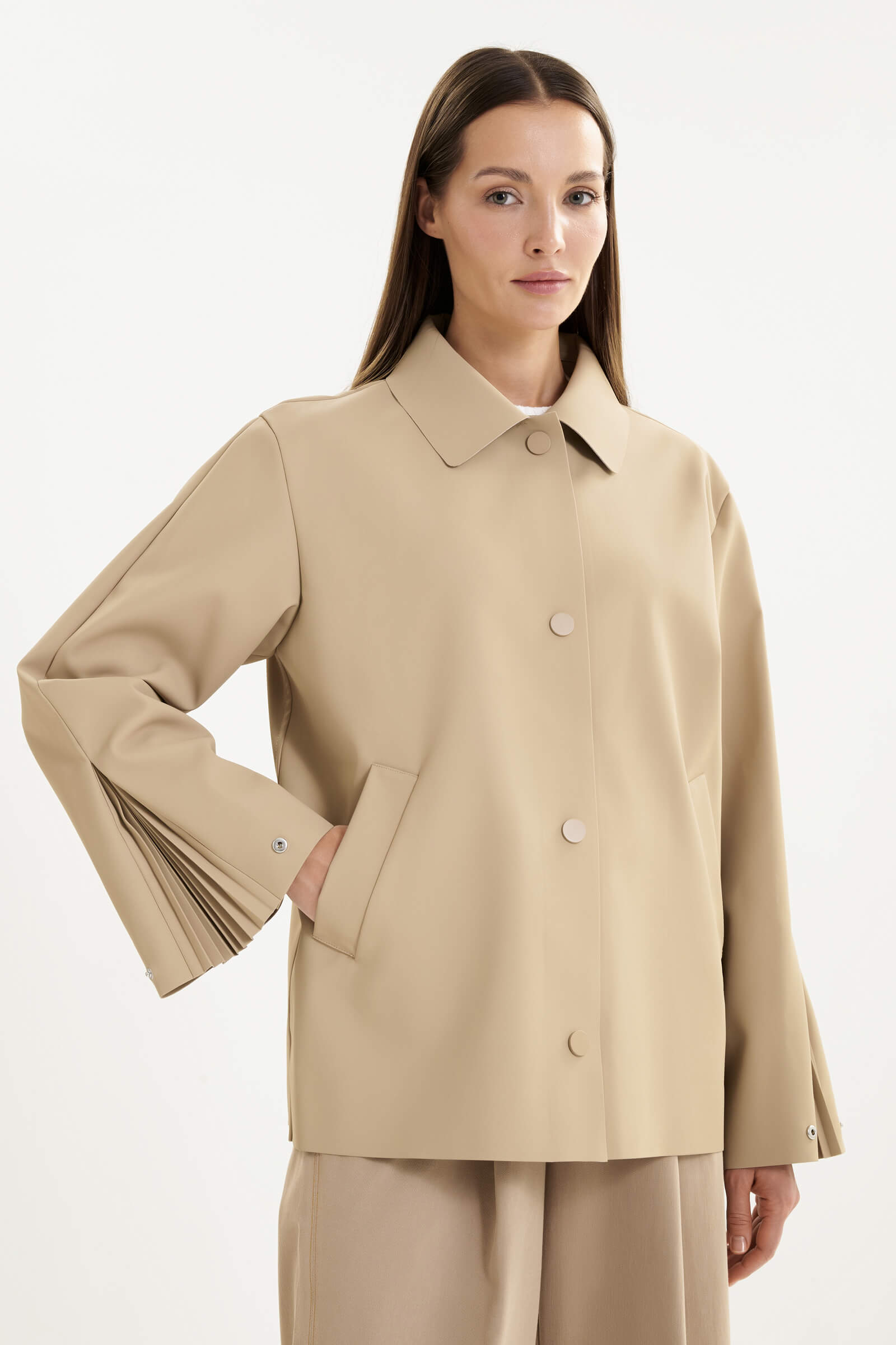 • Рукав полной длины с застежкой на кнопку и эффектной плиссировкой