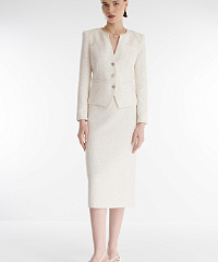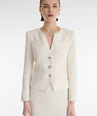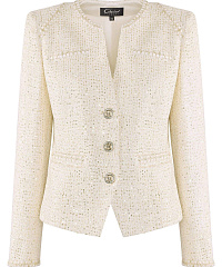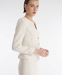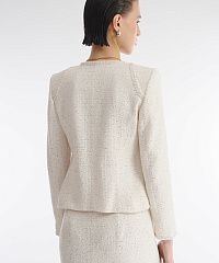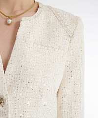 Лаконичный жакет приталенного кроя. Модель декорирована мерцающими микропайетками, деликатный блеск которых не перегружает образ, делая изделие уместным как для особых случаев, так и повседневных аутфитов. Носите жакет в паре с юбкой из той же линейки или стилизуйте с вещами, уже имеющимися у вас в гардеробе.
