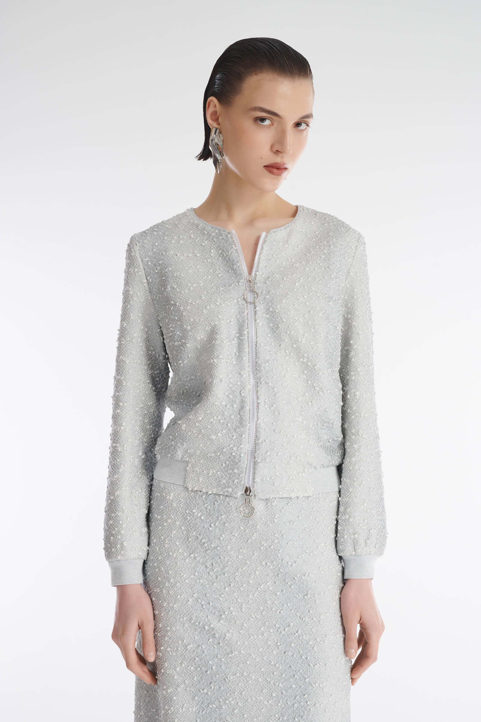 - Манжеты и нижний край изделия дополнены трикотажной резинкой с люрексом