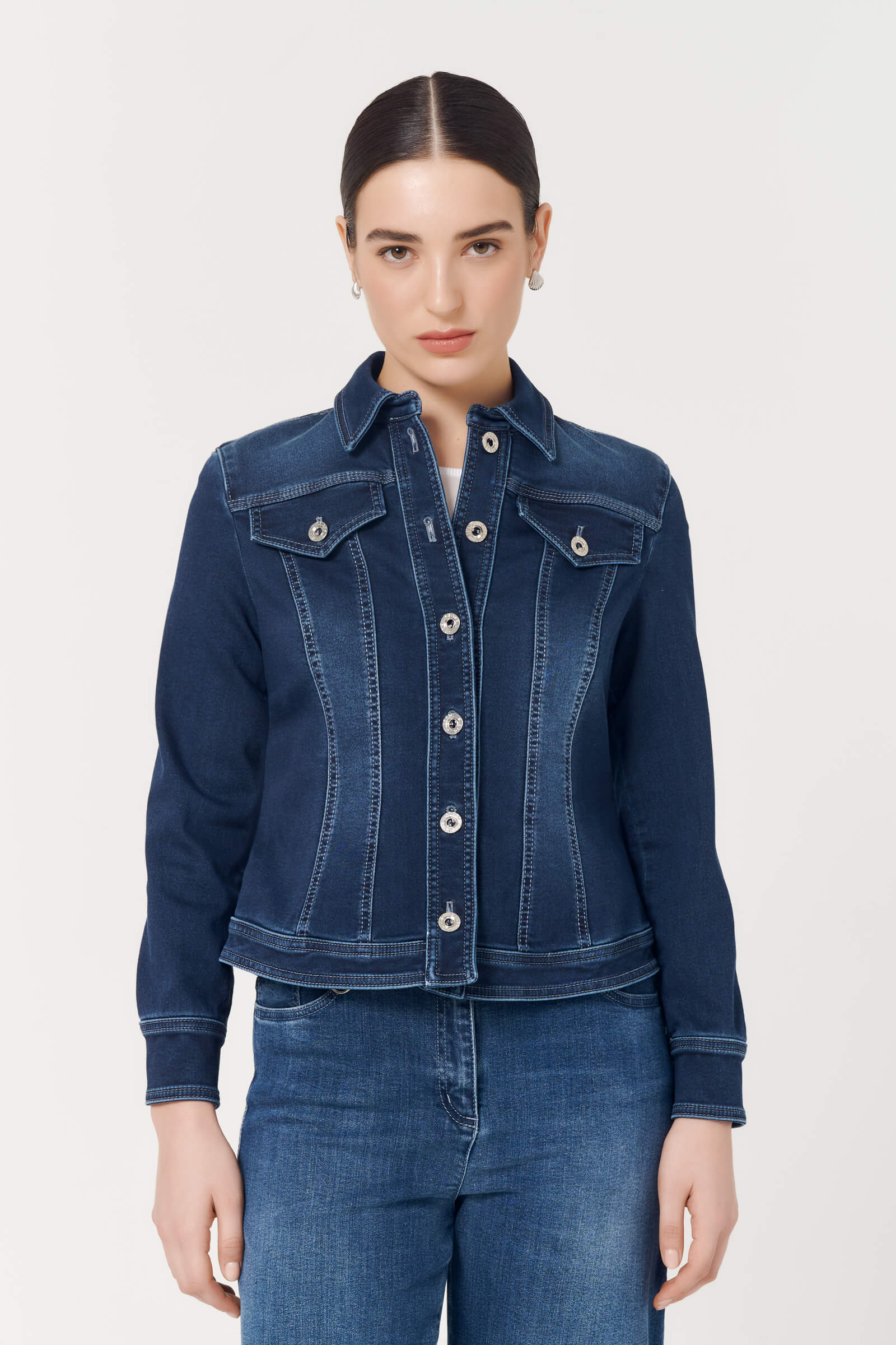 Джинсовая куртка из денима с потертостями идеально подойдет для создания повседневного образа на каждый день. Приталенный крой куртки изящно подчеркивает изгибы фигуры. Надежная и долговечная фурнитура в виде пуговиц на болтах, сделает модель любимой вещью в гардеробе.